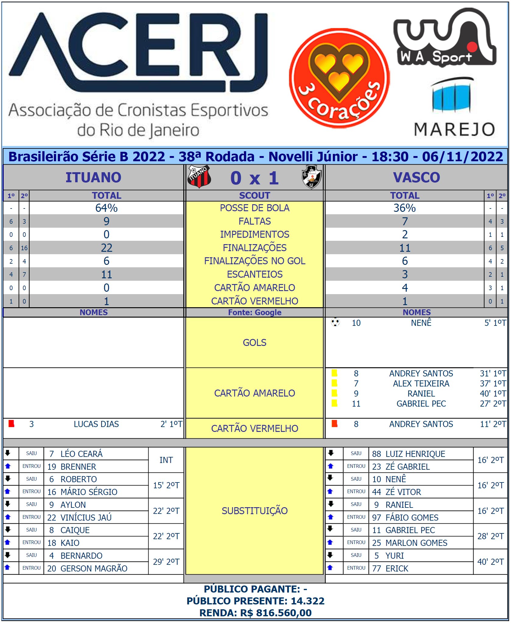Scout Final de Ituano e Vasco pela 38ª Rodada do Campeonato Brasileiro da série B 2022 no Novelli Junior (Fonte: Google) #Acerjinforma #BrasileiraoSerieB #ITUxVAS #Ituano #Vasco @BrasileiraoB @ituanooficial @VascodaGama