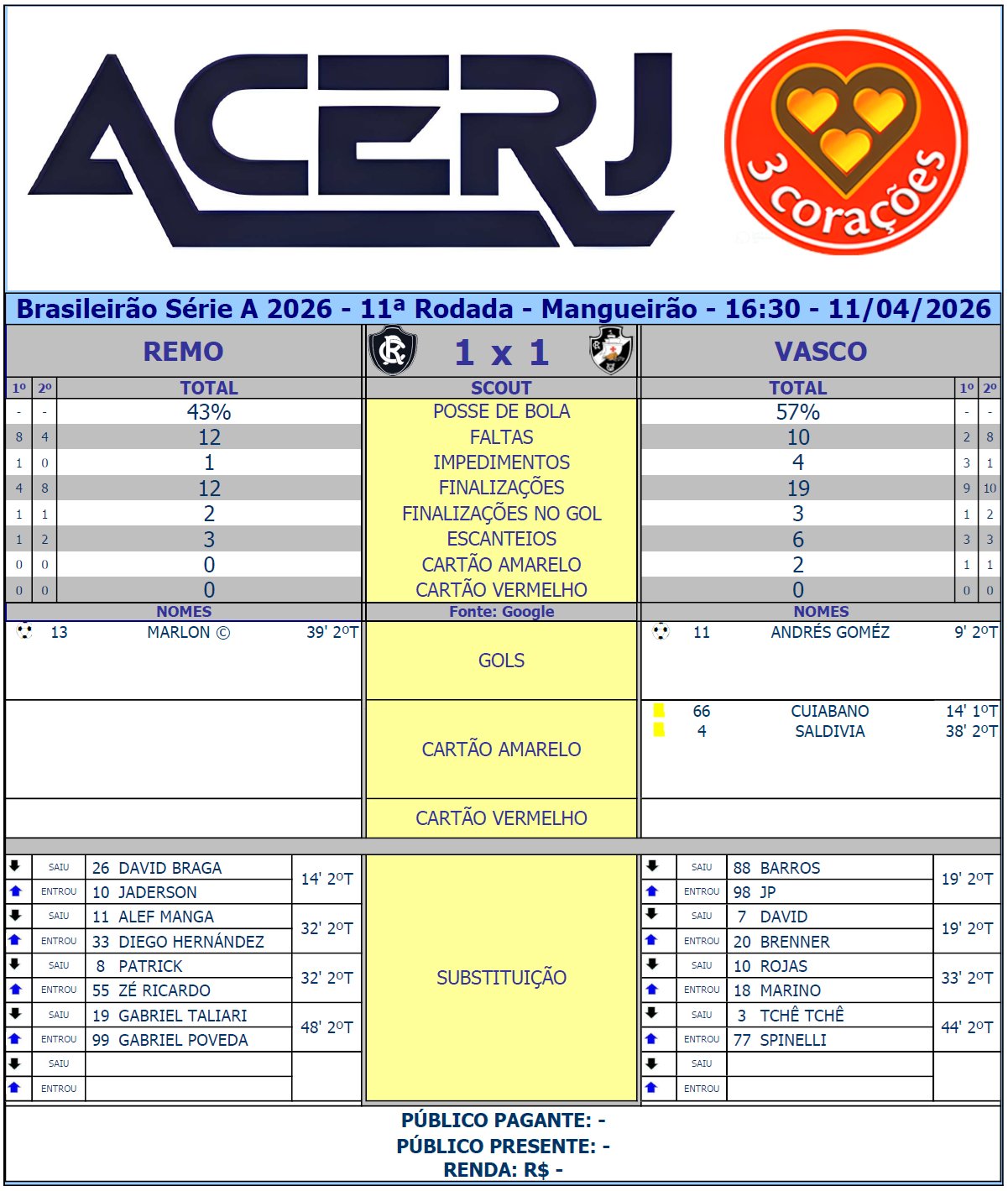 Scout Final de Remo e Vasco pela 11ª Rodada do Campeonato Brasileiro 2026 no Mangueirão (Fonte: Google) #Acerjinforma #brasileirao2026 #REMxVAS #ClubeDoRemo #VascodaGama @Brasileirao @ClubeDoRemo @VascodaGama