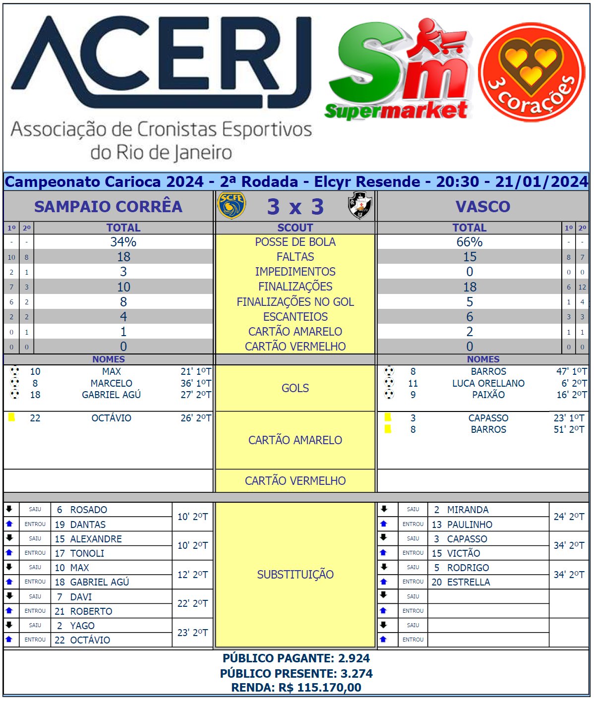 Scout Final de Sampaio Corrêa e Vasco pela 2ª Rodada do Campeonato Carioca 2024 em Bacaxá #Acerjinforma #Cariocao #SCOxVAS #SampaioCorreaRJ #Vasco @Cariocao @SampaioCorreaRJ @VascodaGama