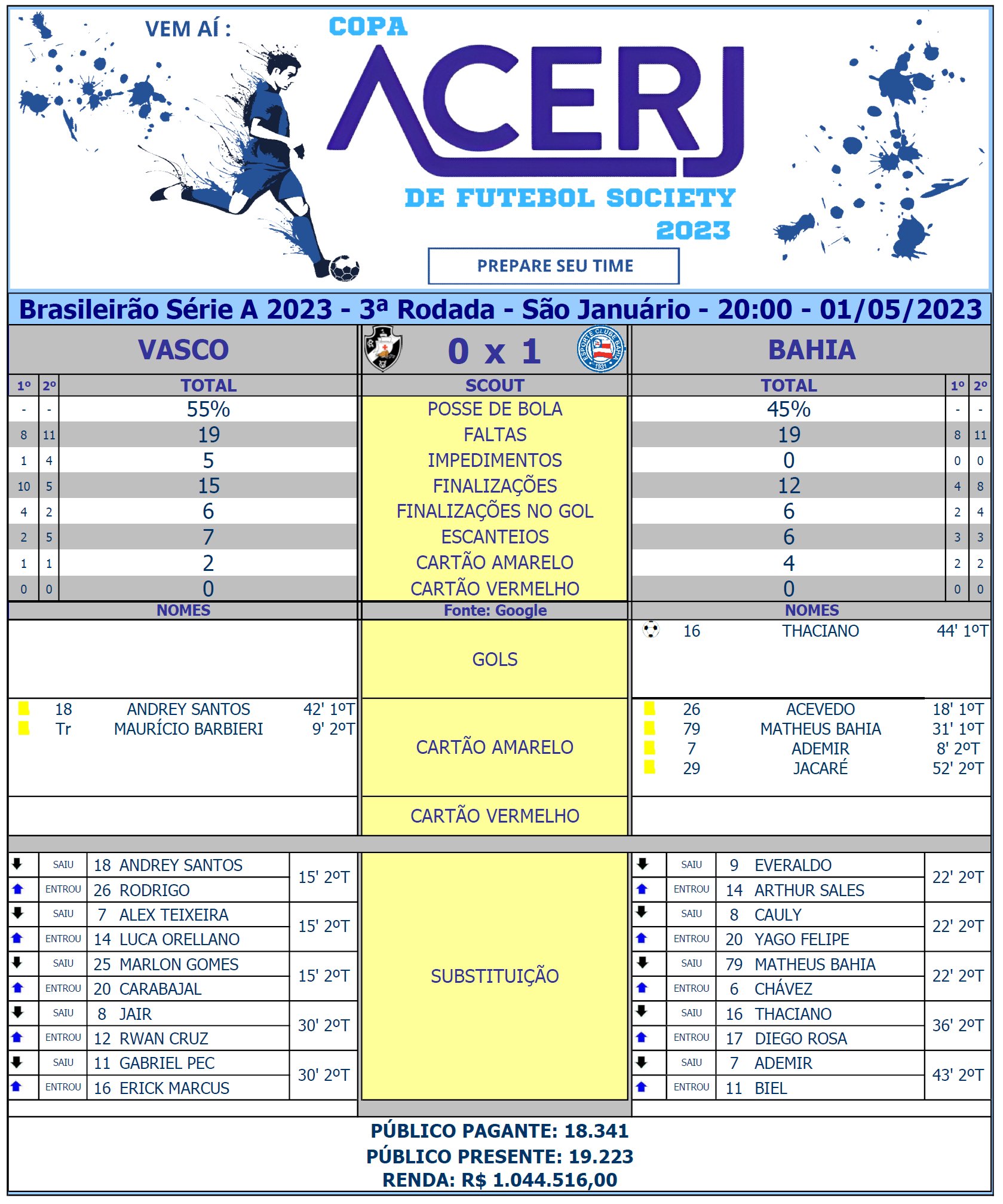 Scout Final de Vasco e Bahia pela 3ª Rodada do Campeonato Brasileiro 2023 em São Januário (Fonte: Google) #Acerjinforma #Brasileirao #VASxBAH #Vasco #ECBahia @Brasileirao @VascodaGama @ecbahia