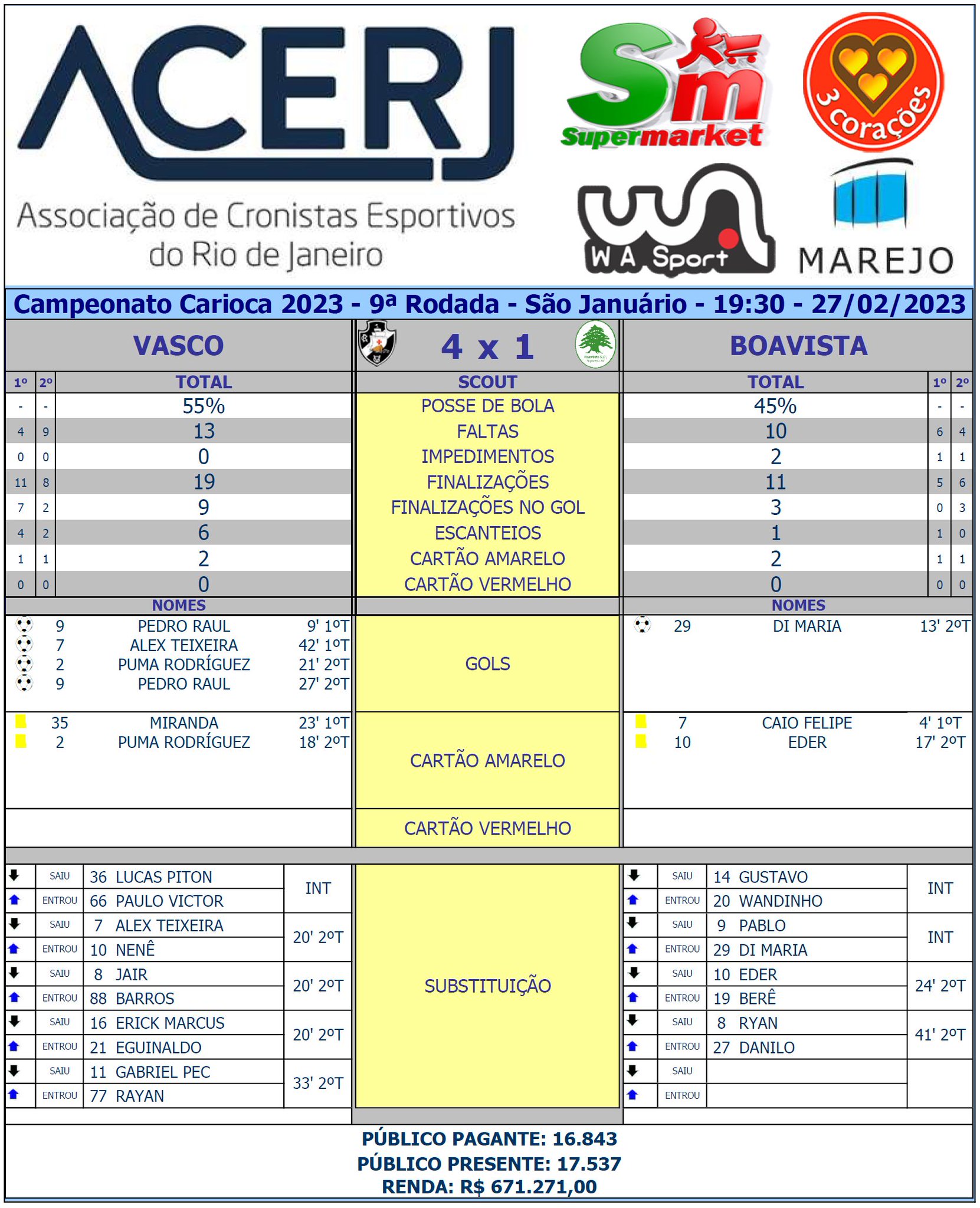 Scout Final de Vasco e Boavista pela 9ª Rodada do Campeonato Carioca 2023 em São Januário #Acerjinforma #CampeonatoCarioca #VASxBVT #Vasco #BoavistaSC @Cariocao @VascodaGama @boavistasc