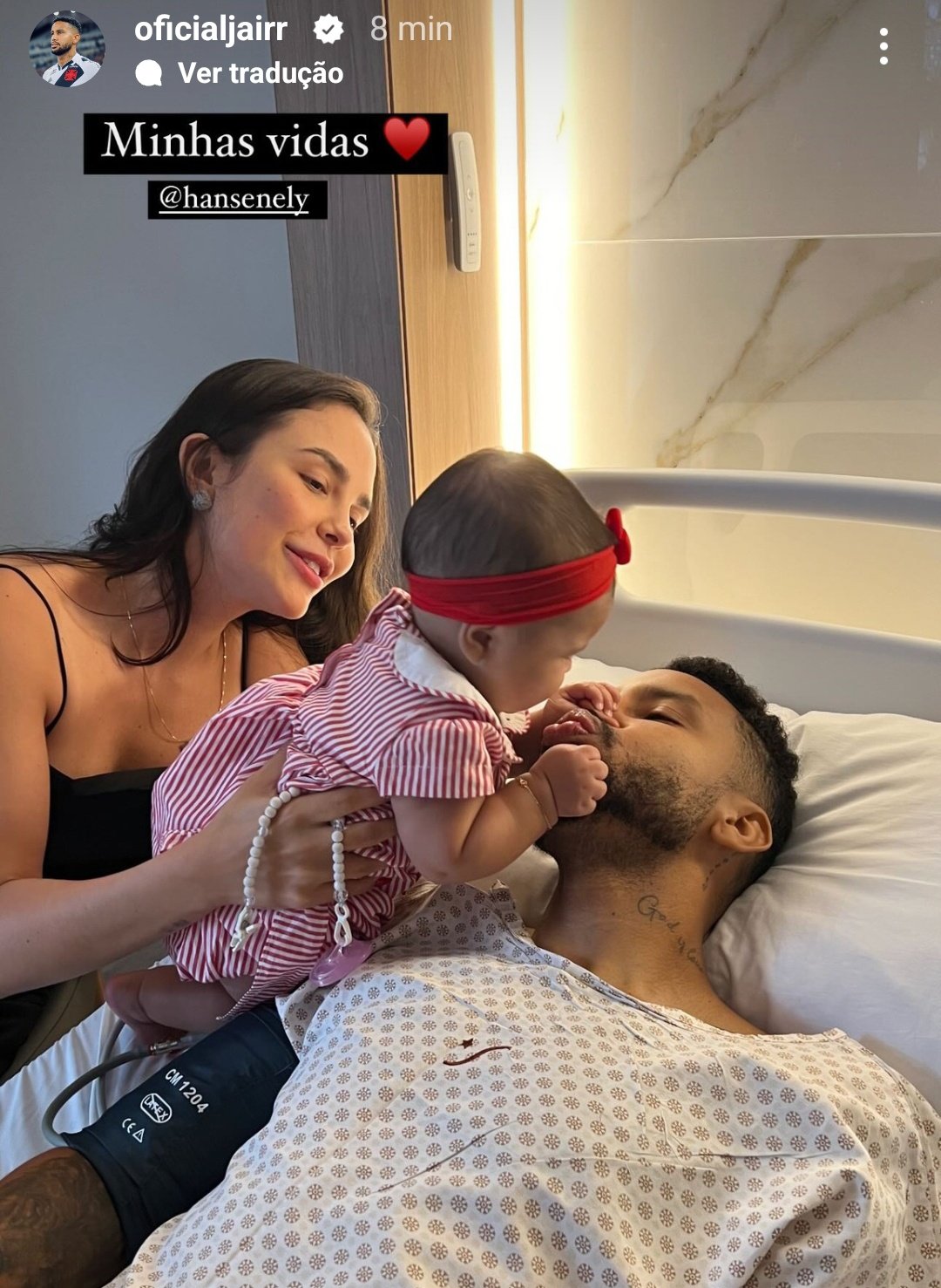Jair postou uma foto da esposa e da filha, o visitando no hospital.
