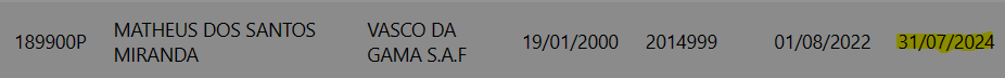 Na FERJ, está registrado que o contrato dele vai até 31/07/2024.