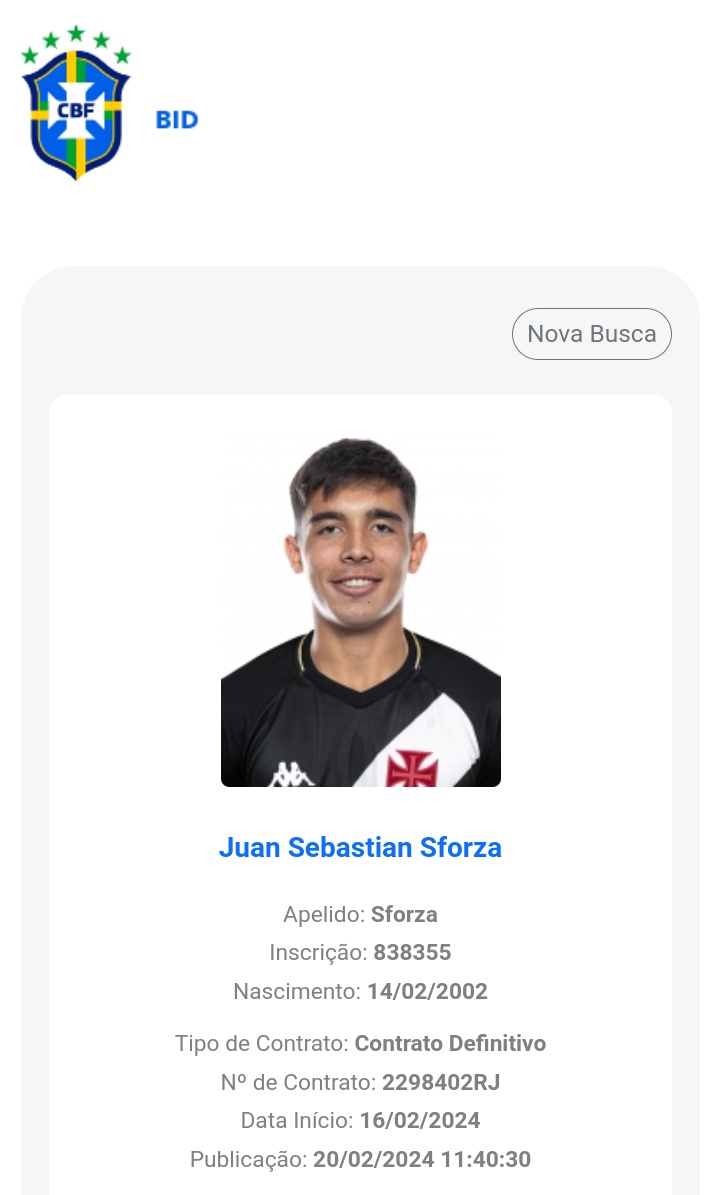Sforza aparece no BID da CBF e já pode estrear pelo Vasco