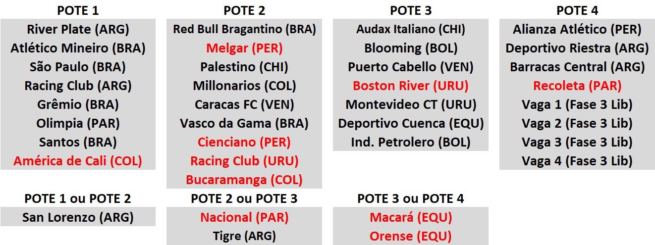 🎲💢| Atualização dos potes do sorteio da Copa Sul Americana.