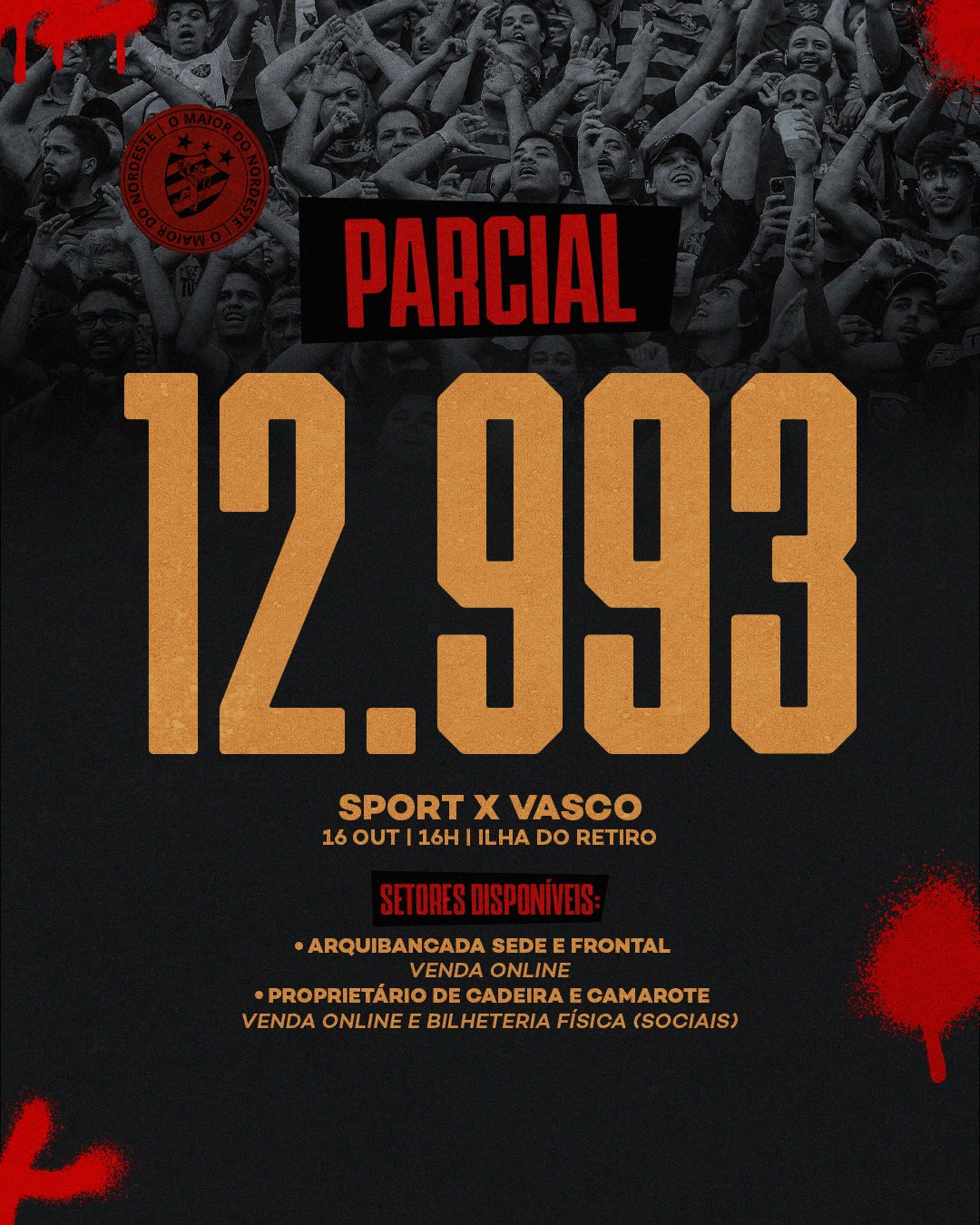 Sport x Vasco: Foram emitidos quase 13 mil ingressos até o momento
