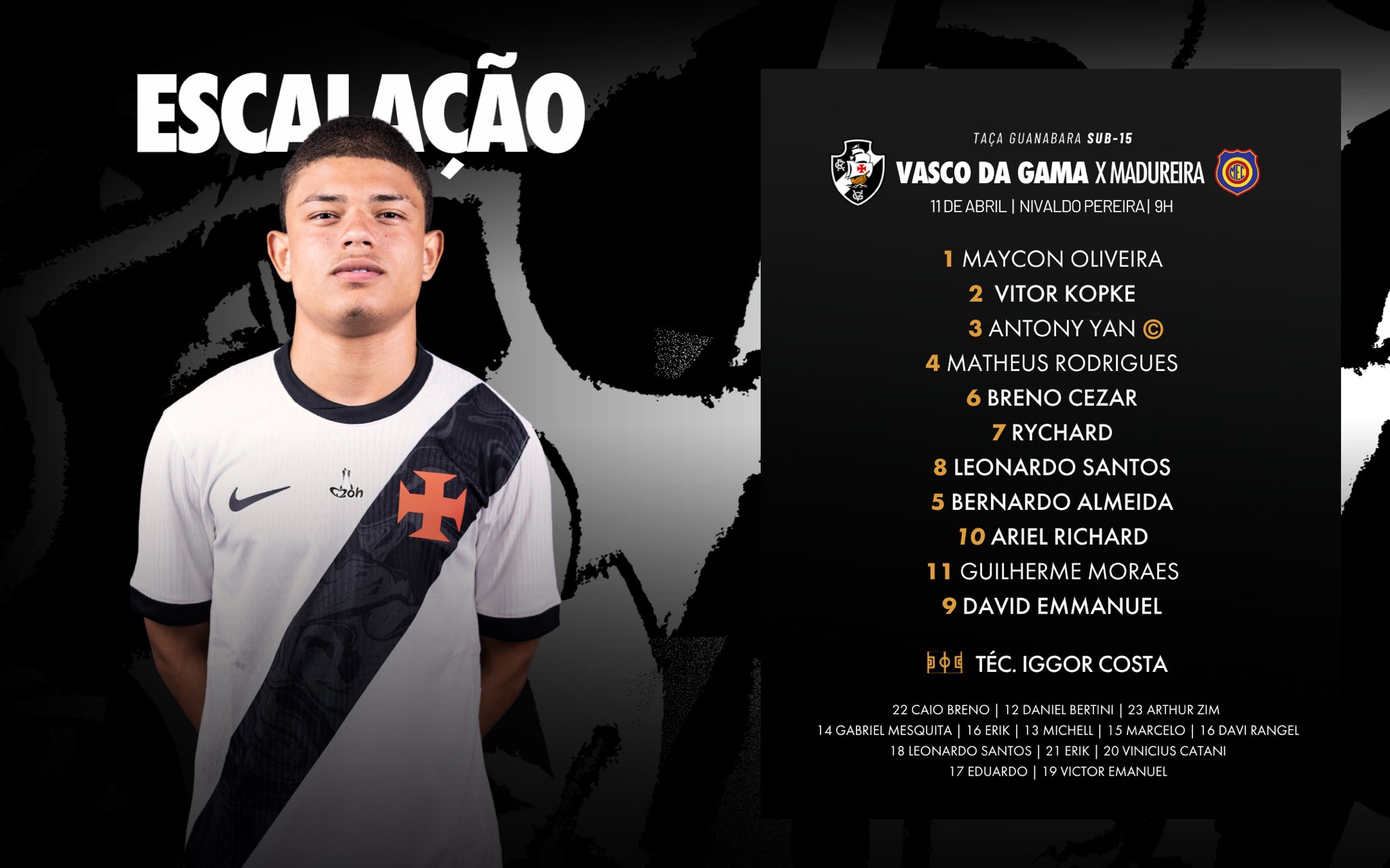 📋📋 Sub-15 escalado para enfrentar o Madureira pela Taça Guanabara!