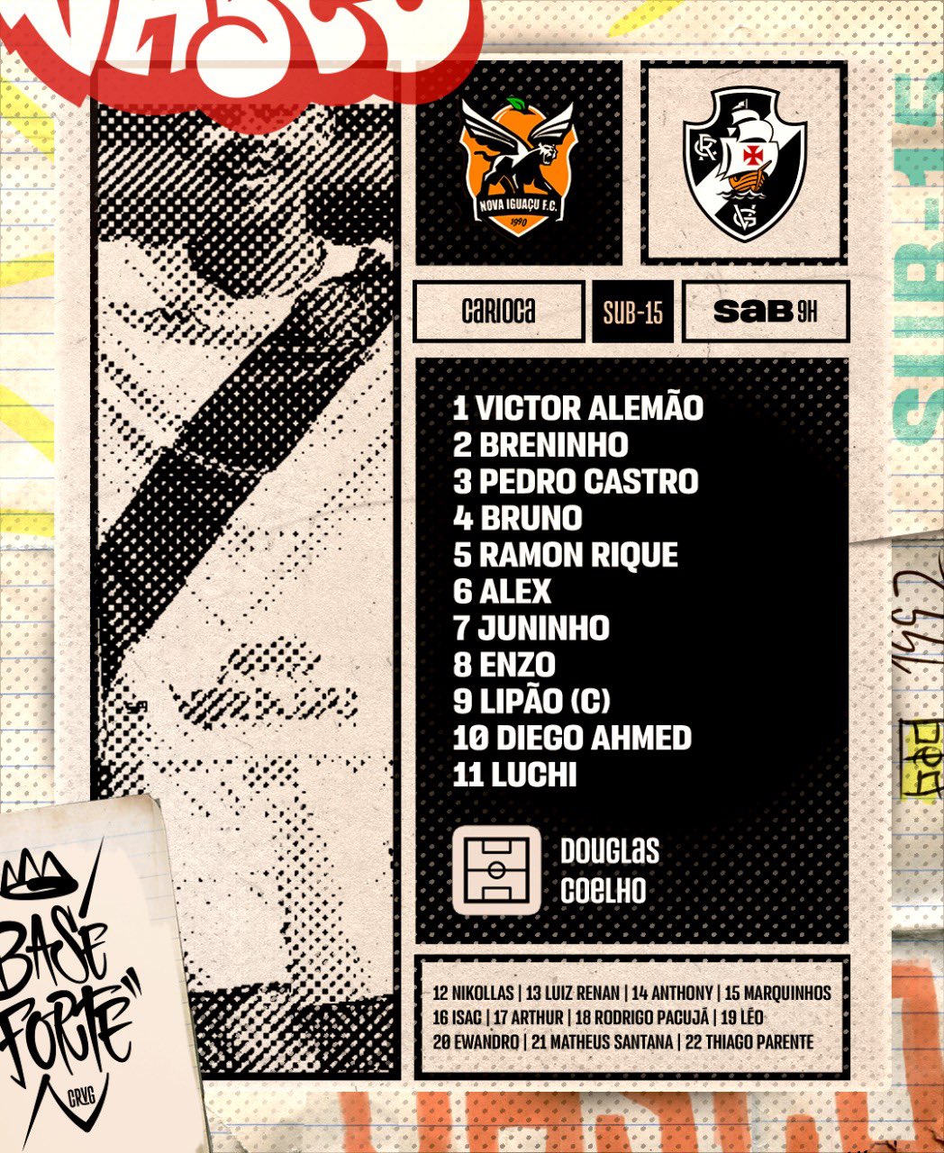 Sub-15: Vasco escalado para enfrentar o Nova Iguaçu