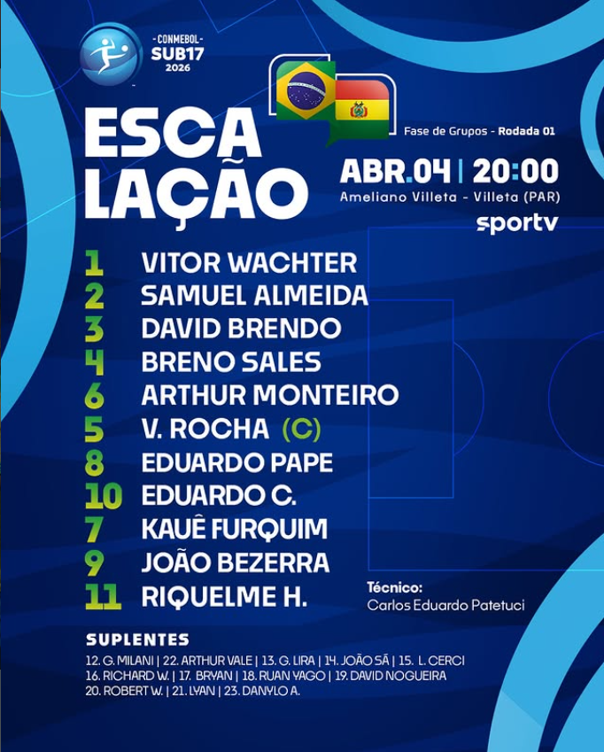 A Seleção Brasileira Sub-17 está escalada para a estreia no Sul-Americano, contra a Bolívia!