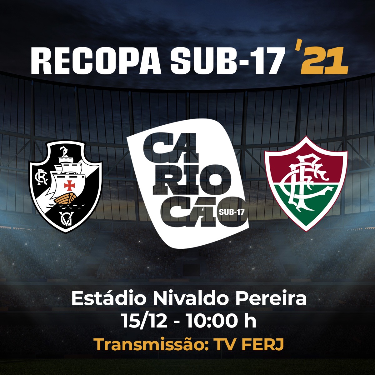 Nesta quarta-feira, às 10h, tem a Recopa Sub 17 ao vivo na TV FERJ (Youtube). O @VascodaGama, campeão carioca, e o @FluminenseFC, campeão da Copa Rio, decidem o título. É o tira-teima!!!