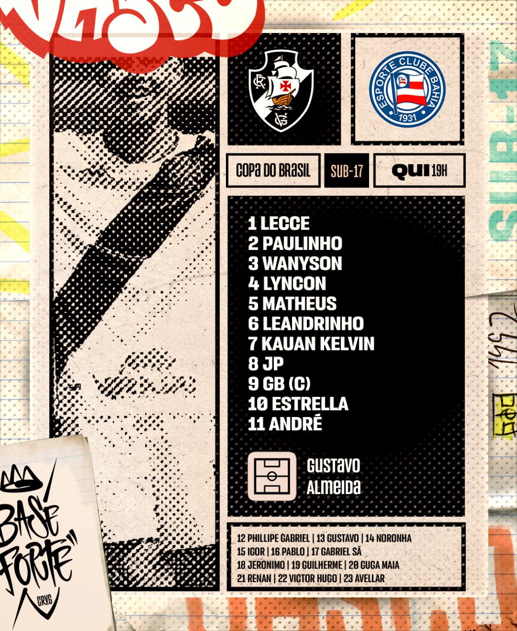 Sub-17: Vasco escalado para enfrentar o Bahia