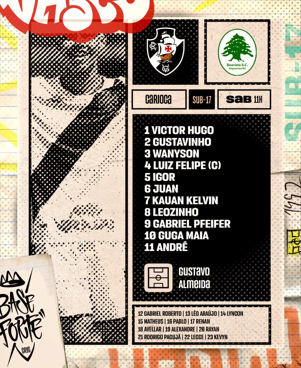 Sub-17: Vasco escalado para enfrentar o Boavista