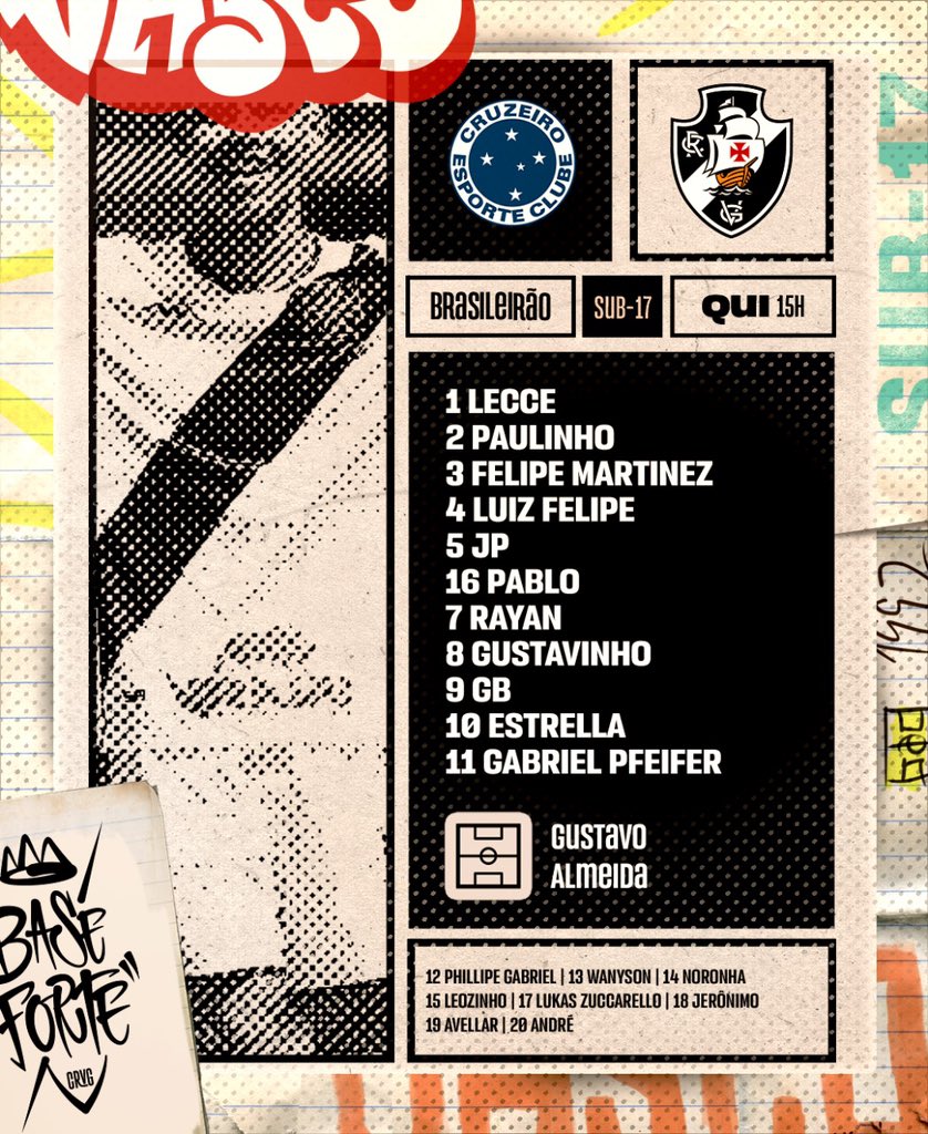 Sub-17: Vasco escalado para enfrentar o Cruzeiro