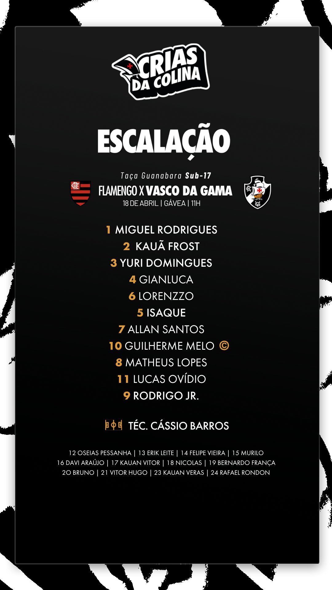 📋📋 Sub-17 escalado para enfrentar o Flamengo pela Taça Guanabara!