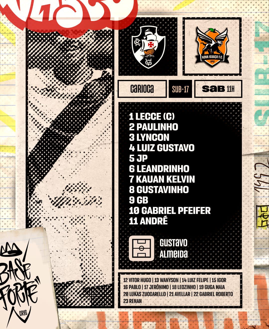 Sub-17: Vasco escalado para enfrentar o Nova Iguaçu