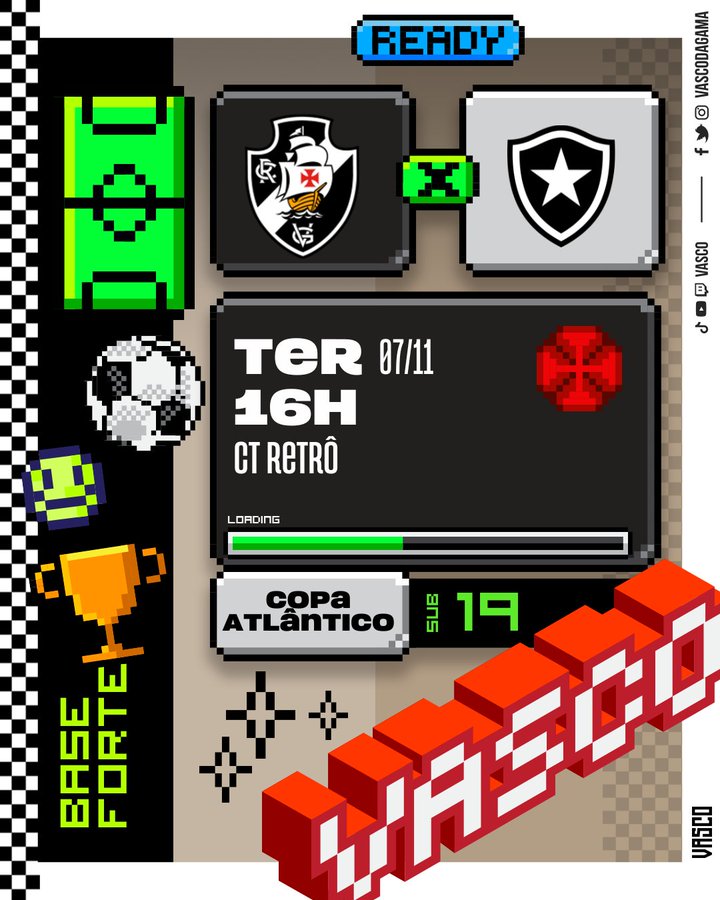 Hoje o Vasco encara o Botafogo na grande final da Copa Atlântico Sub-19, em Camaragibe (PE), às 16h, com transmissão do Canal Nosso Futebol.