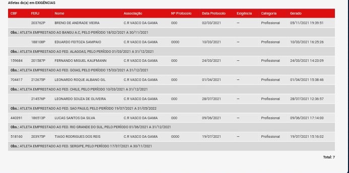 No BIRA da FERJ, inclusive, Breno consta na lista de emprestados pelo Vasco. O contrato de empréstimo com o Bangu terminaria no próximo dia 30.