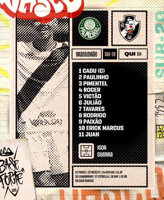 Sub-20: Escalação do Vasco para enfrentar o Palmeiras pelo Brasileirão