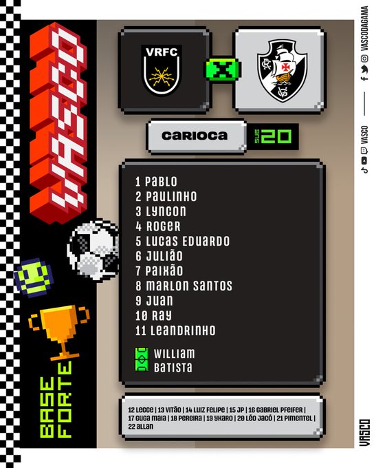 Sub-20: Escalação do Vasco para enfrentar o Volta Redonda