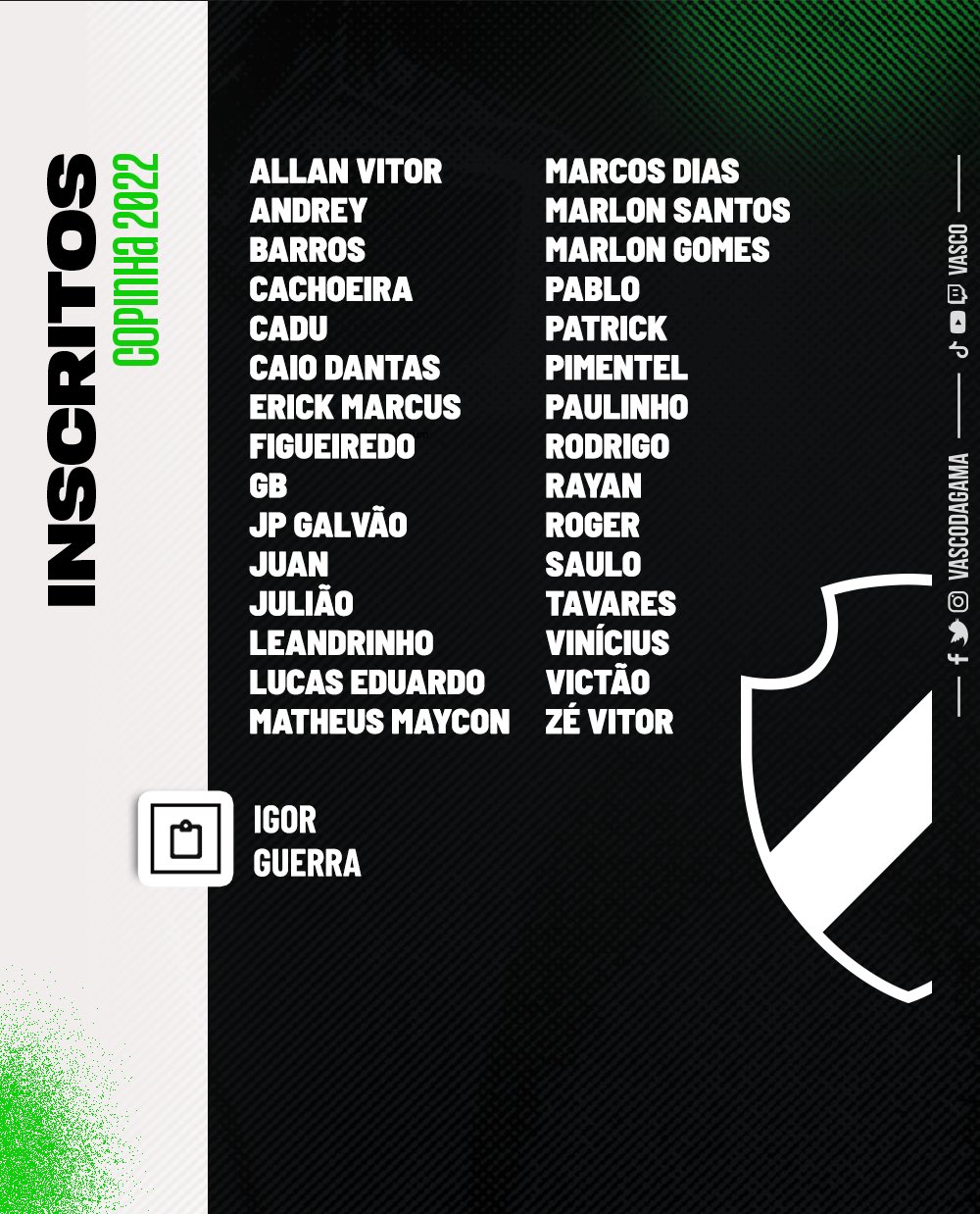 Os 30 jogadores inscritos pelo Vasco para a disputa da @Copinha 2022
