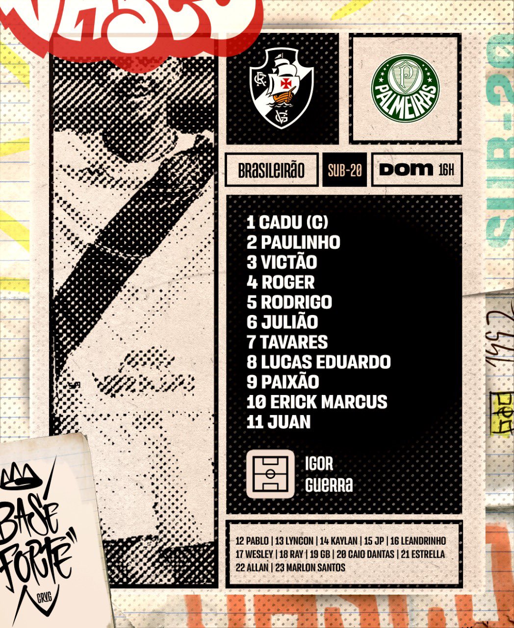 Sub-20: Vasco escalado para enfrentar o Palmeiras