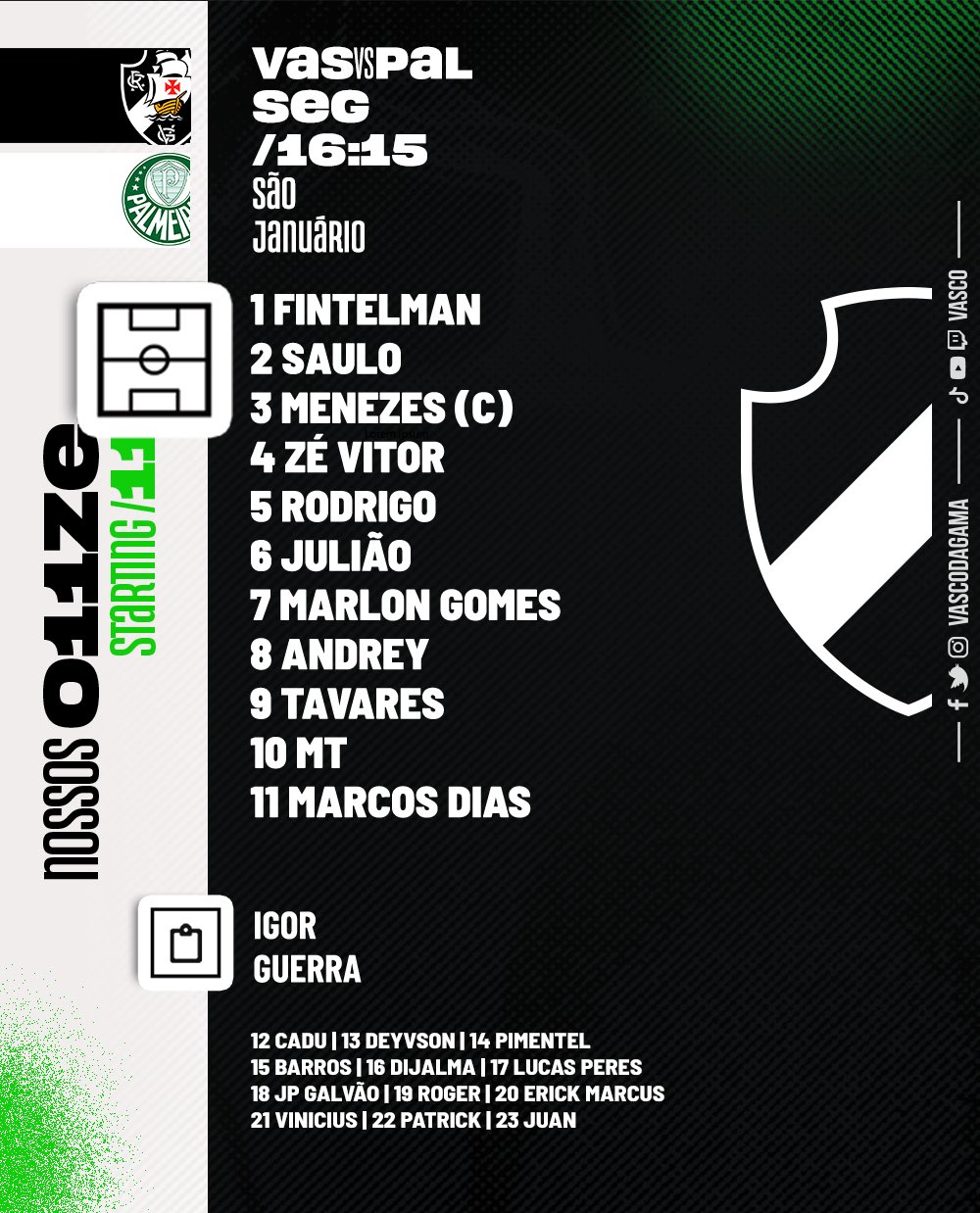 Sub-20: Vasco escalado para enfrentar o Palmeiras