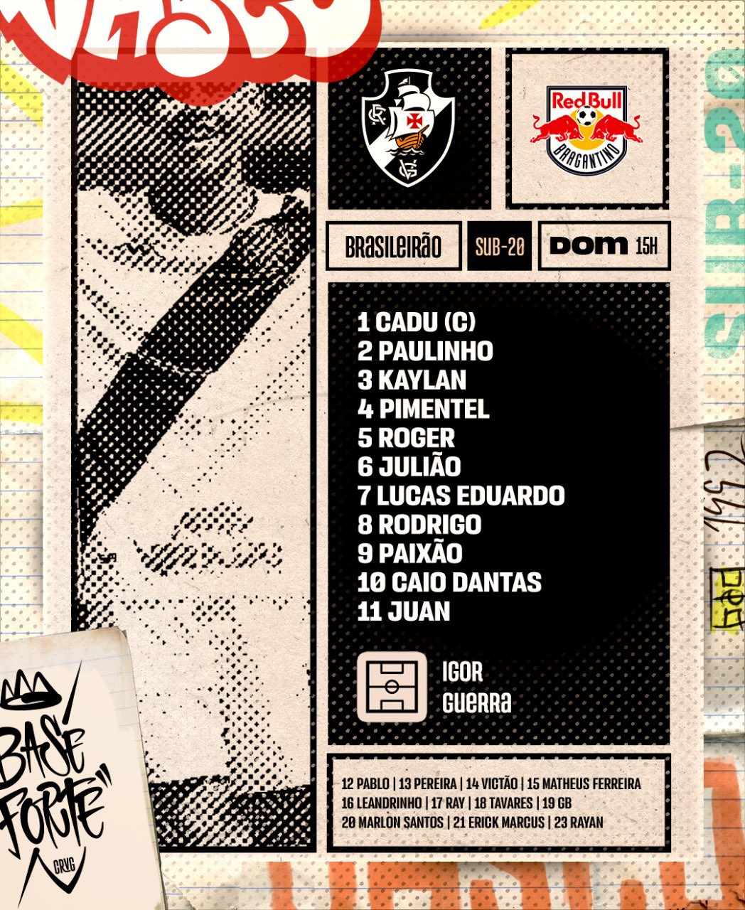 Sub-20: Vasco escalado para enfrentar o RB Bragantino