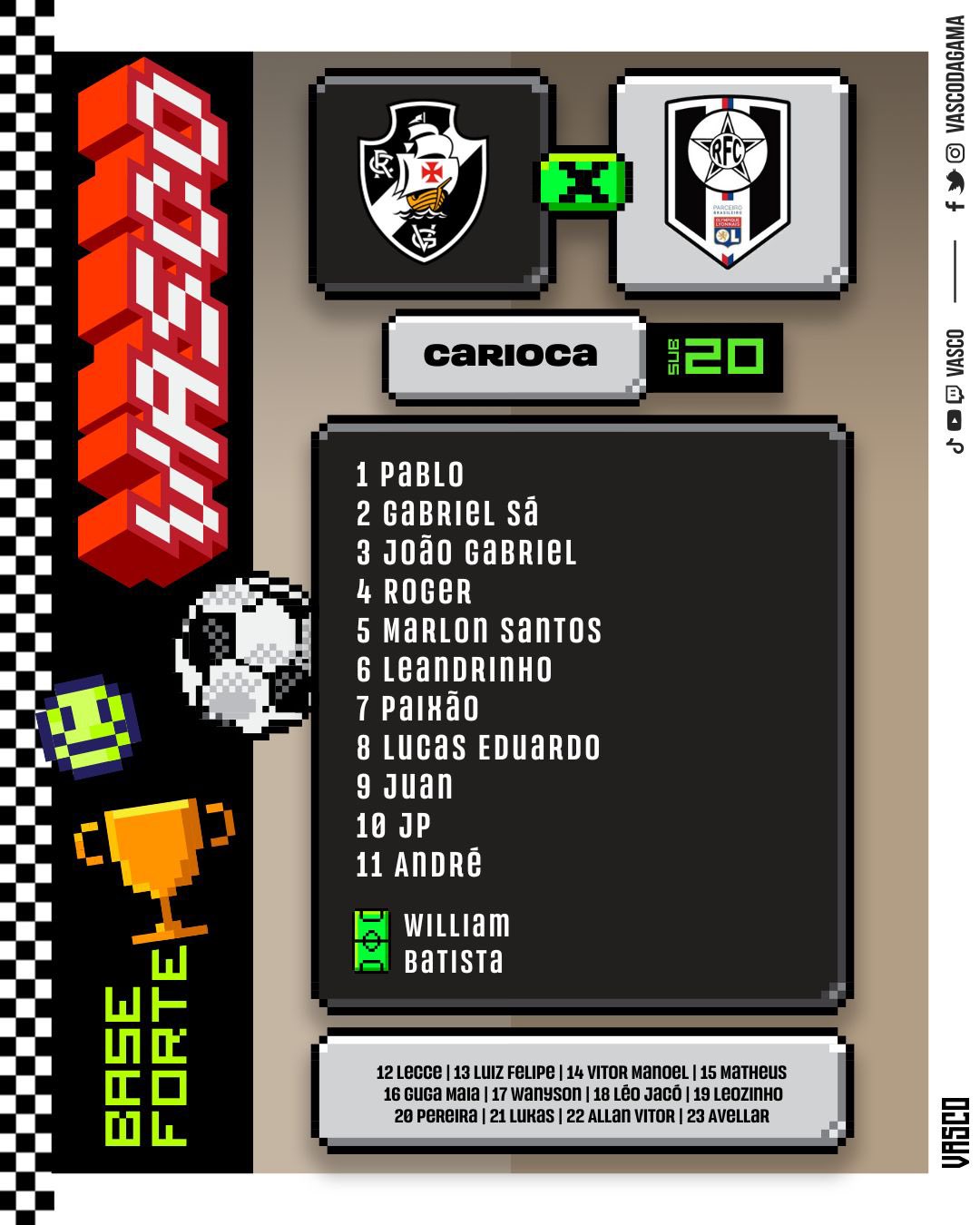 Sub-20 escalado pelo técnico William Batista para enfrentar o Resende! 📋