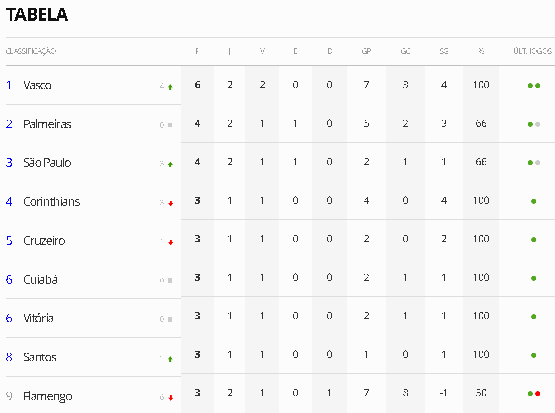 O Vasco assumiu a liderança da competição, enquanto o Flamengo caiu para 9º. No entanto, como foi o primeiro jogo da rodada, ainda é possível que as posições sejam alteradas.