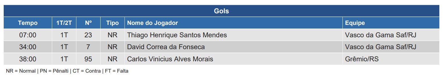 Súmula mostra para quem foi o 1° gol do Vasco contra o Grêmio; foto