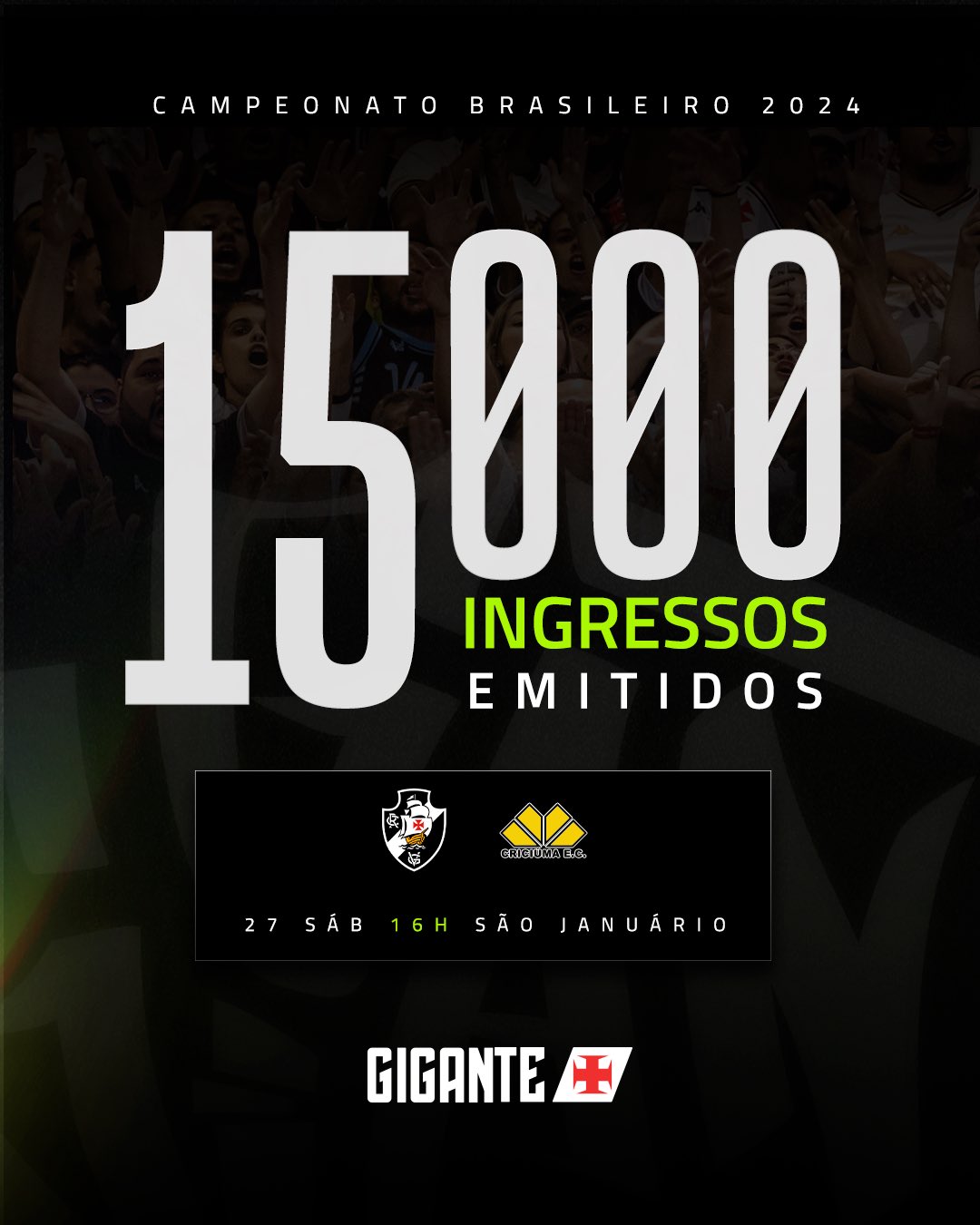 Tá acabando! 15 mil ingressos emitidos para Vasco x Criciúma