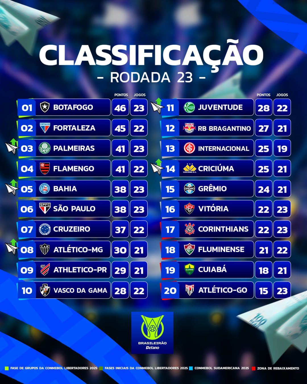 🗓️💢E assim ficou a classificação do Brasileirão após a 23ª rodada.