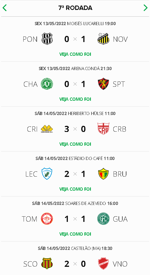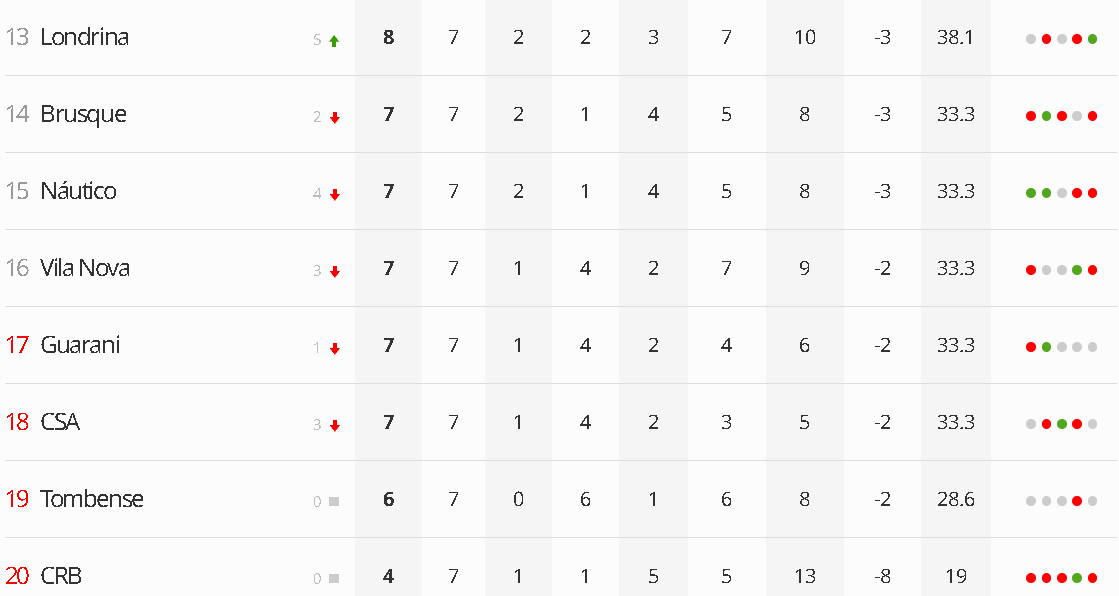 Tabela atualizada da Série B após jogos deste domingo (15) da 7ª rodada