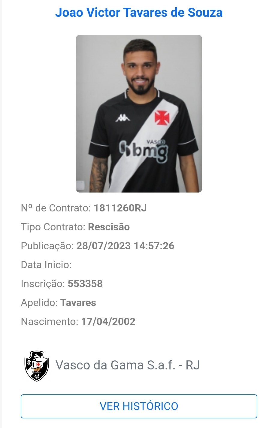 O atacante Tavares não faz mais parte do elenco do Vasco. O jogador, que veio com grande expectativa para o time Sub-20, acabou não correspondendo. Ele já tinha estourado a idade de base e não foi aproveitado pelo profissional. O contrato dele iria até o final deste ano.
