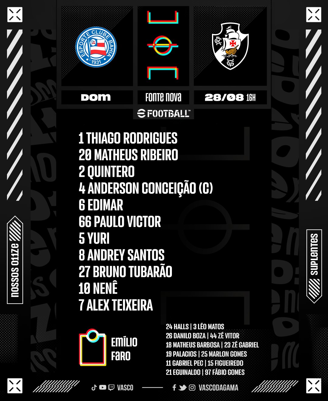 Teixeira de falso 9! Vasco escalado para enfrentar o Bahia
