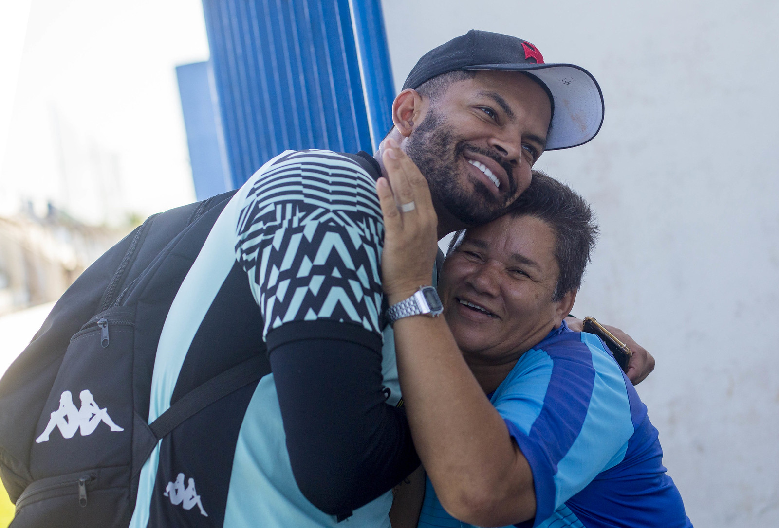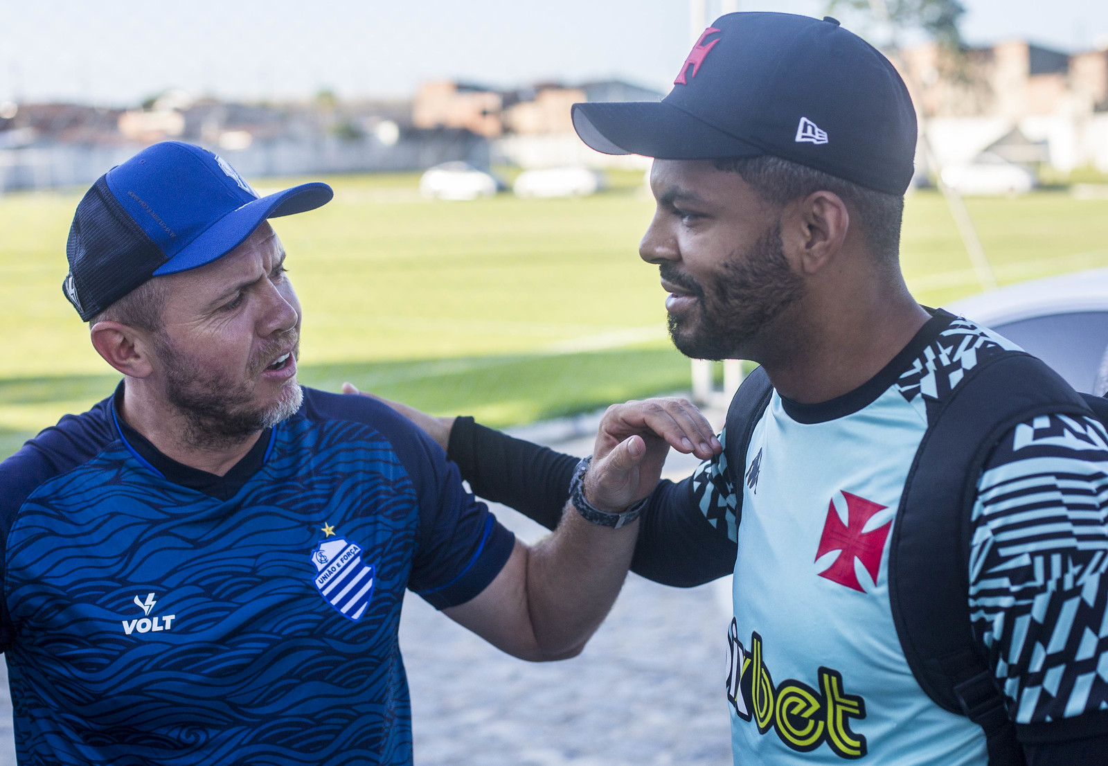 Ex-goleiro do CSA por dois anos, Thiago Rodrigues recebeu o carinho de funcionários do clube durante o treino do Vasco no CT do Azulão
