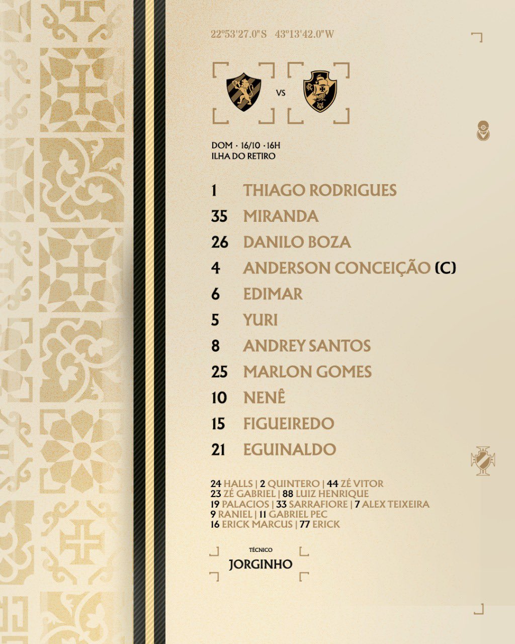 Vasco escalado. Como trouxemos ontem, Miranda é a única novidade. Zagueiro será improvisado na lateral direita. El já jogou ali e vinha treinando na posição. Mais de um ano depois de ser suspenso pela Conmebol, o atleta volta aos gramados. #trilha