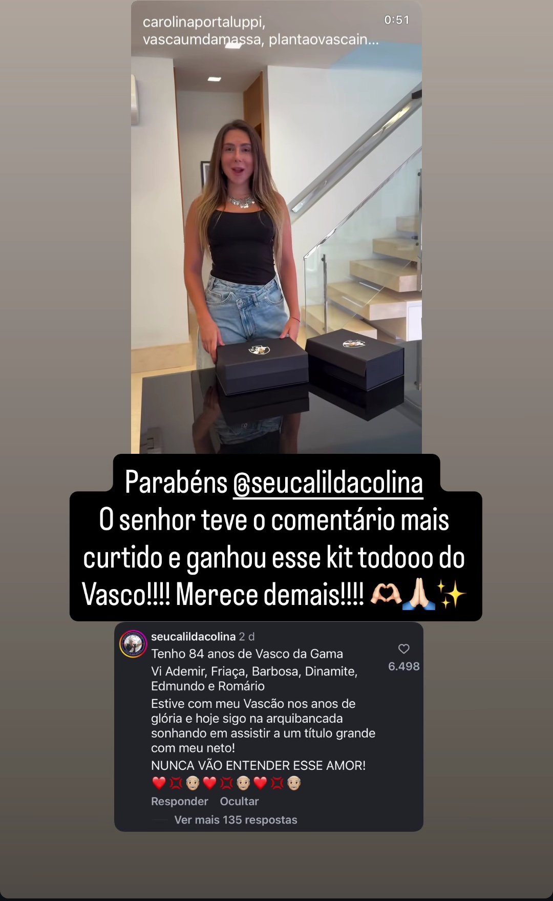 ❤️Seu Calil ganhou o sorteio feito por Carol Portaluppi de um kit do Vasco. 💢❤️