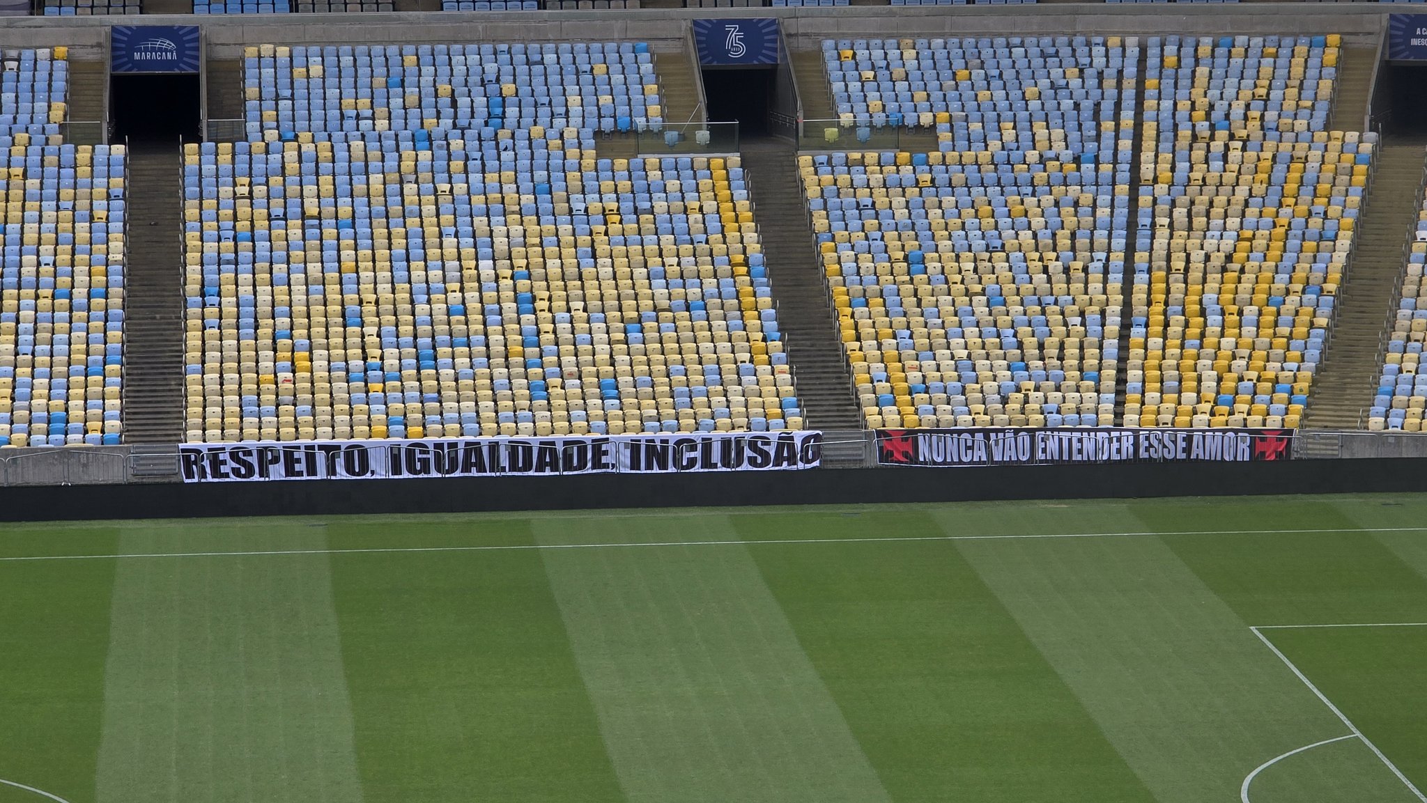 A torcida do Vasco já deixou muita coisa preparada para esse jogo de hoje contra o Fluminense, pela semifinal da Copa do Brasil. Há bandeiras nas arquibancadas do lado Norte e faixas bem na frente das cabines de rádio e TV. Confira: