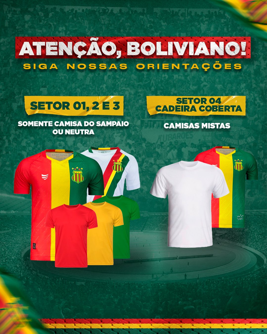 Por questão de segurança não será admitida a entrada de pessoas trajadas com camisas de outras agremiações esportivas nos portões do setor 1. Visamos preservar o bem-estar dos torcedores, e essa medida se aplica somente ao setor citado.