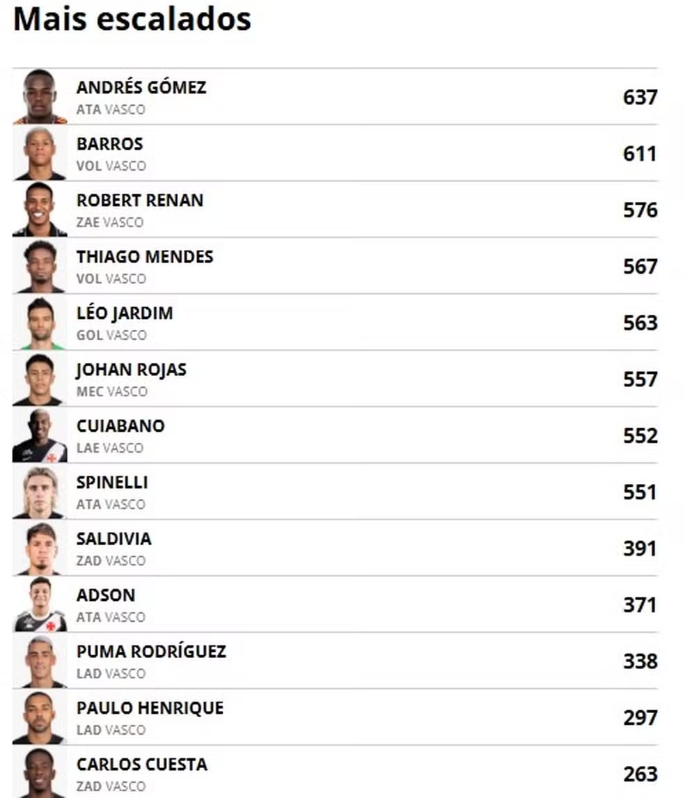 O time montado pela torcida para o clássico tem: Léo Jardim, Puma Rodríguez, Saldivia, Robert Renan, Cuiabano, Mendes, Barros, Rojas, Adson, Spinelli e Gómez.