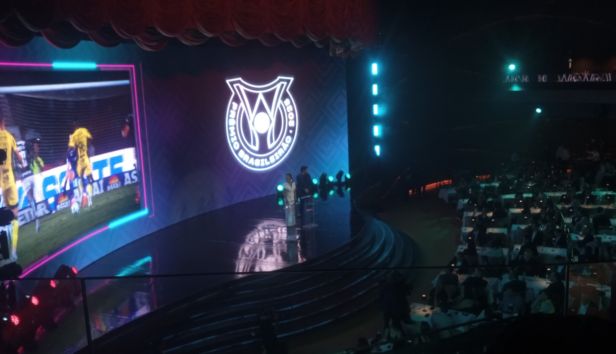 Já rolando a solenidade de premiação do Brasileirão, aqui no palco do Roxy. A vascaína Juliana Paes e o botafoguense Marcelo Adnet são os apresentadores do evento. @radiotupi @tupiesportes