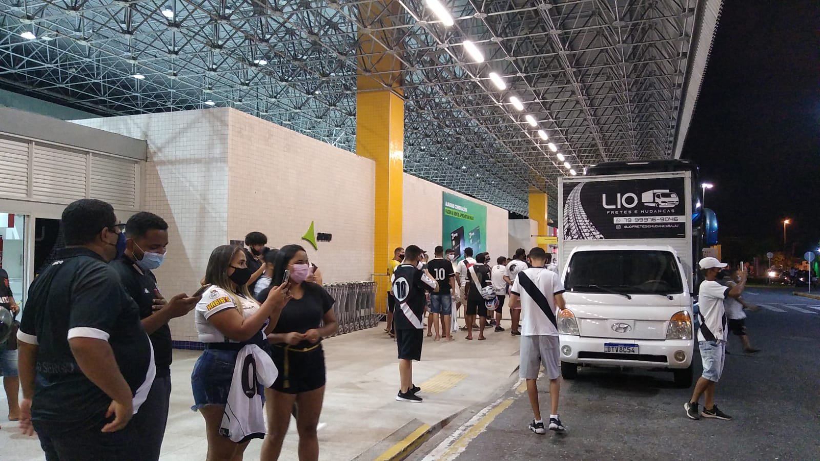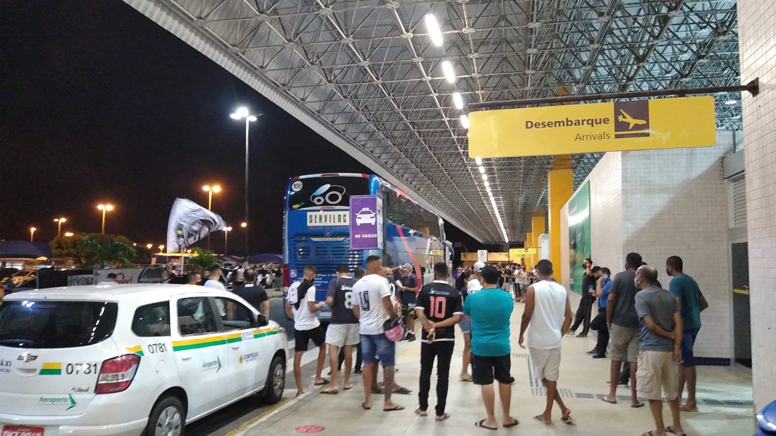 Imagens de agora do Aeroporto Internacional de Aracaju. A torcida do Vasco está aguardando a chegada do time.