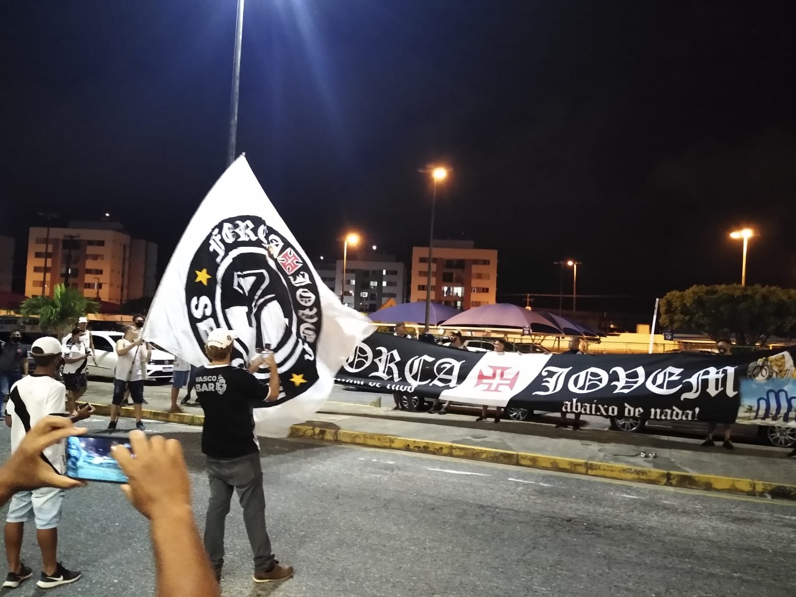 A Força Jovem já vai colocando suas bandeiras. Expectativa de muita festa para a chegada dos jogadores do Vasco.