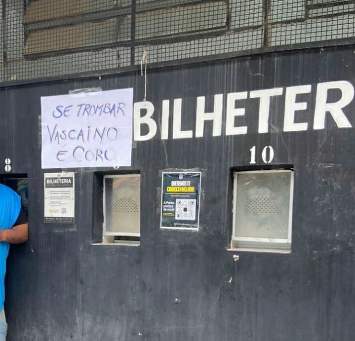 Torcedores da Ponte Preta colocaram um cartaz ameaçando os vascaínos em uma das bilheterias do Moisés Lucarelli. Aos torcedores que forem, máximo cuidado.