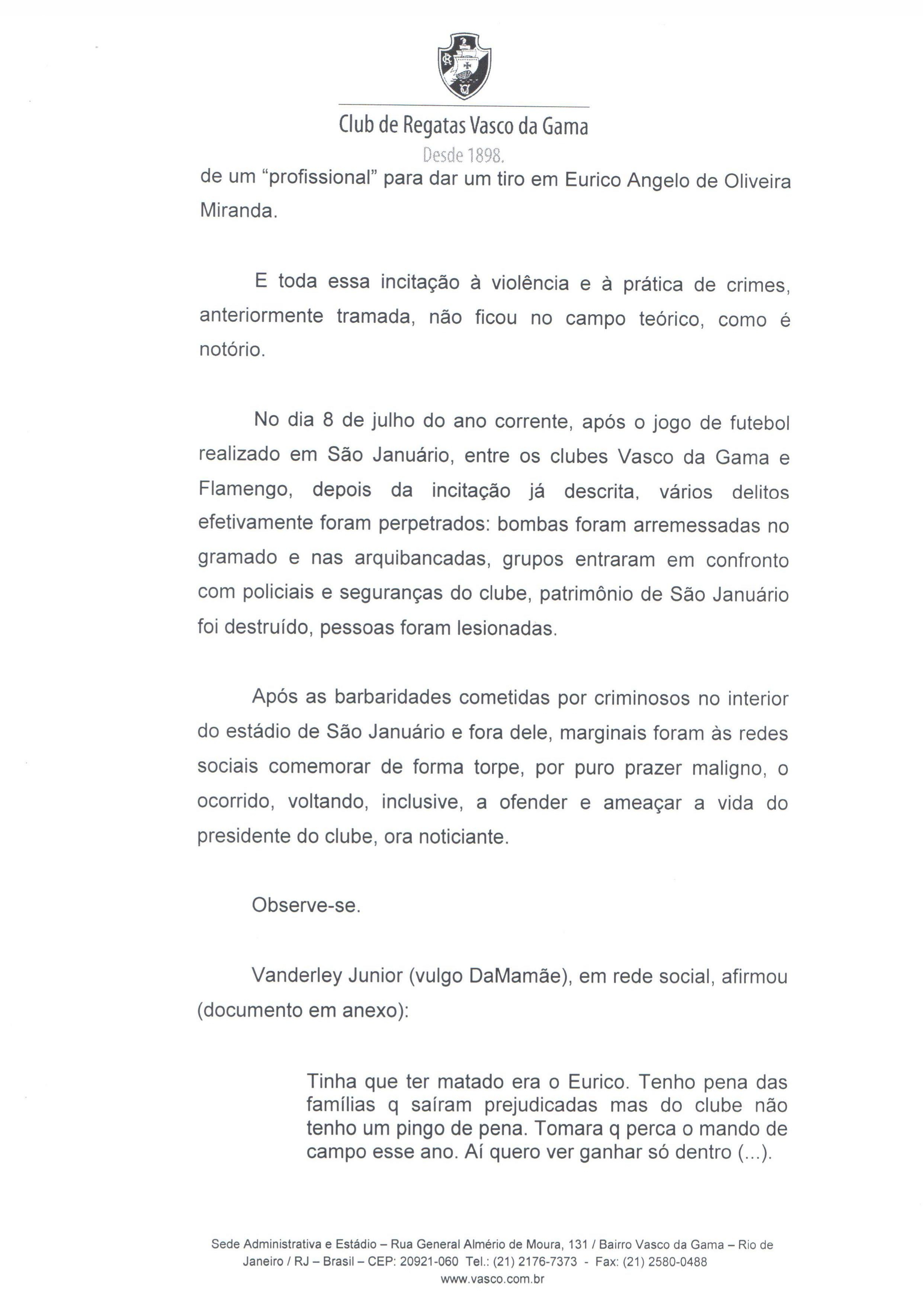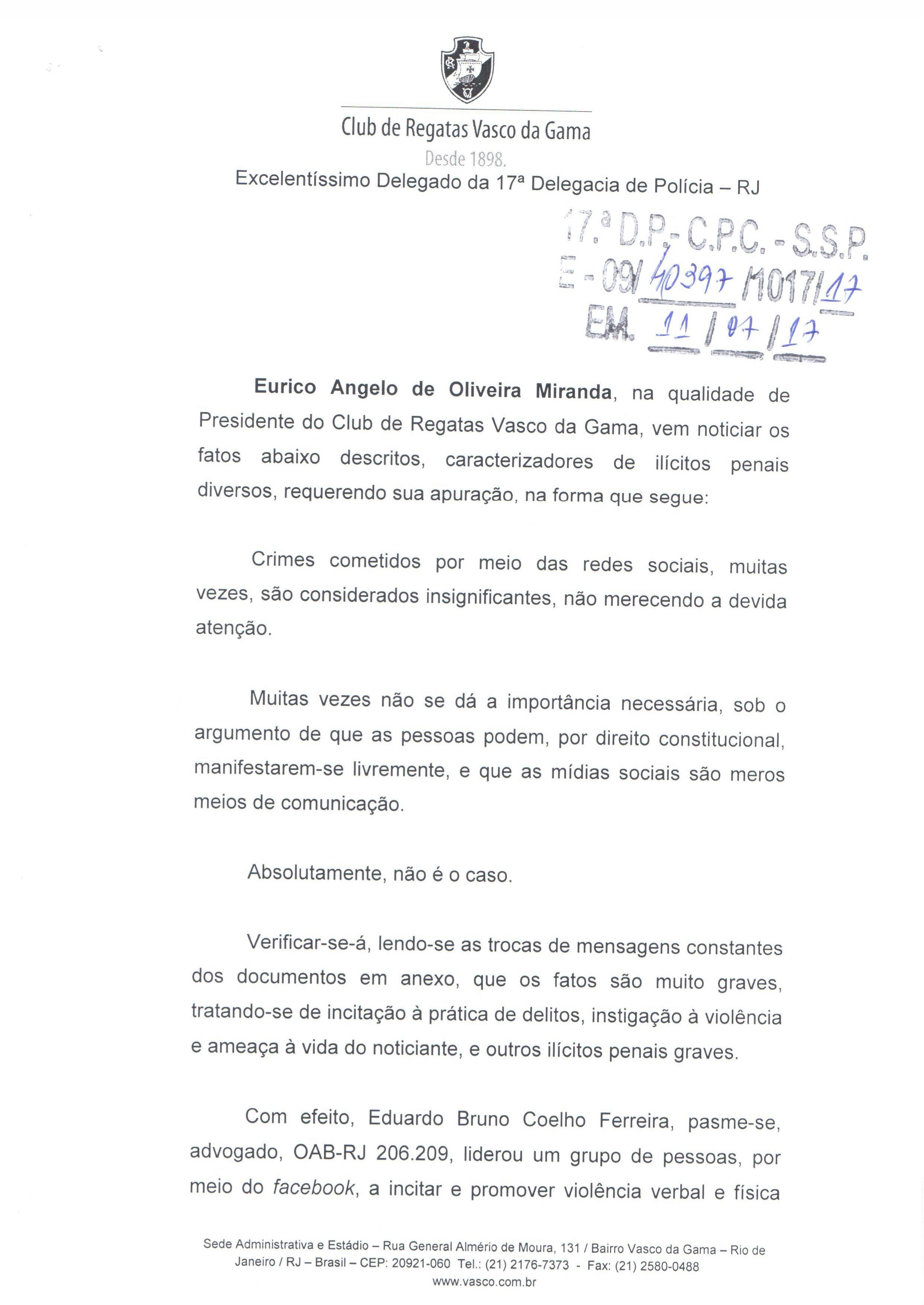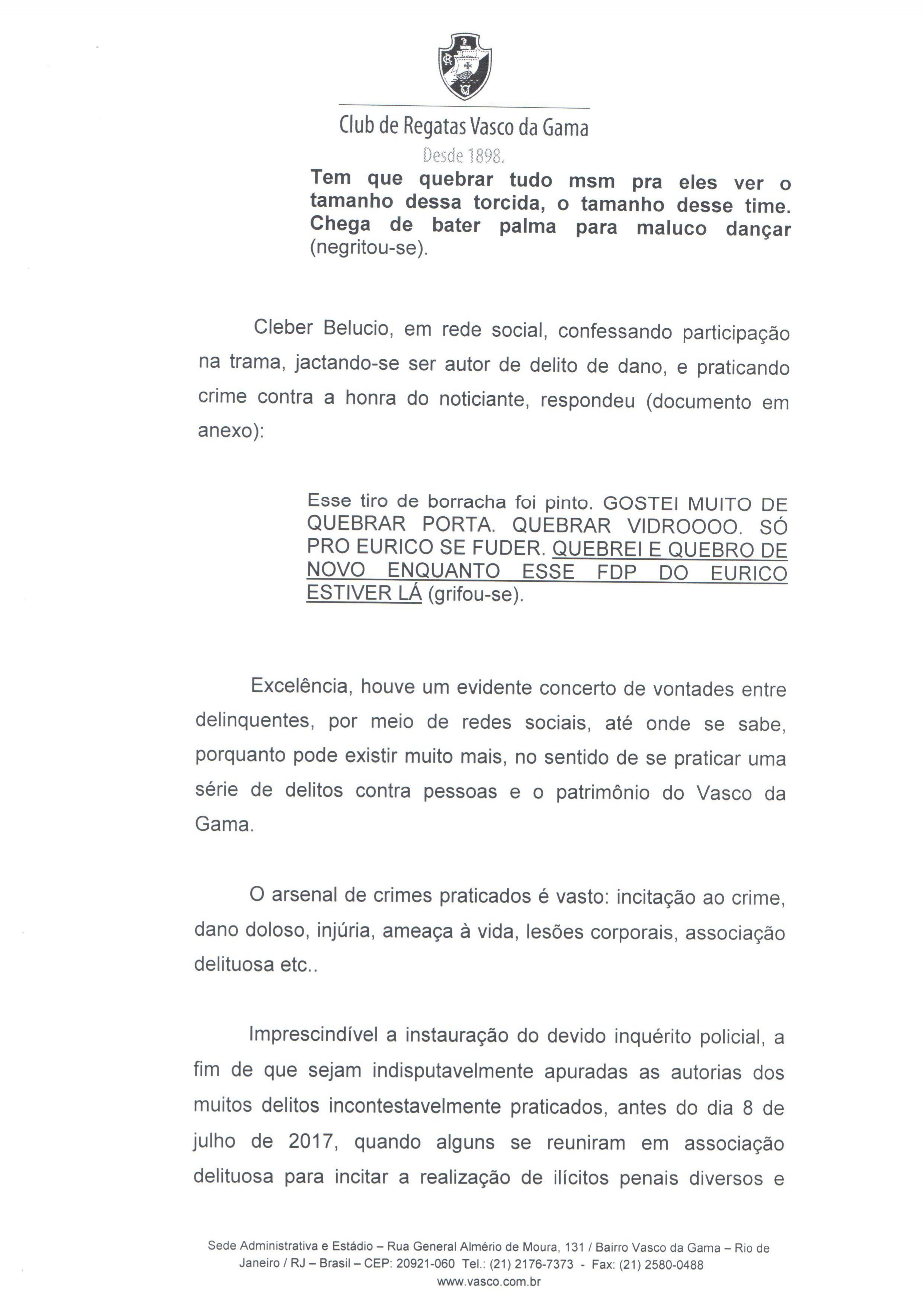 Vasco aciona a Polícia Civil para apurar incitações a violência