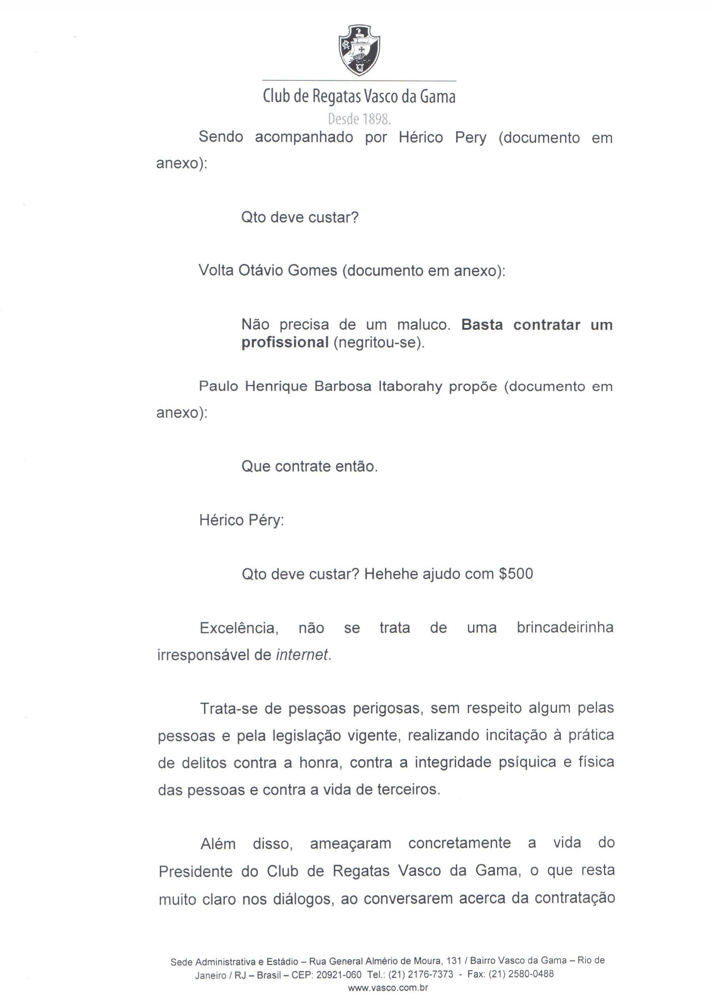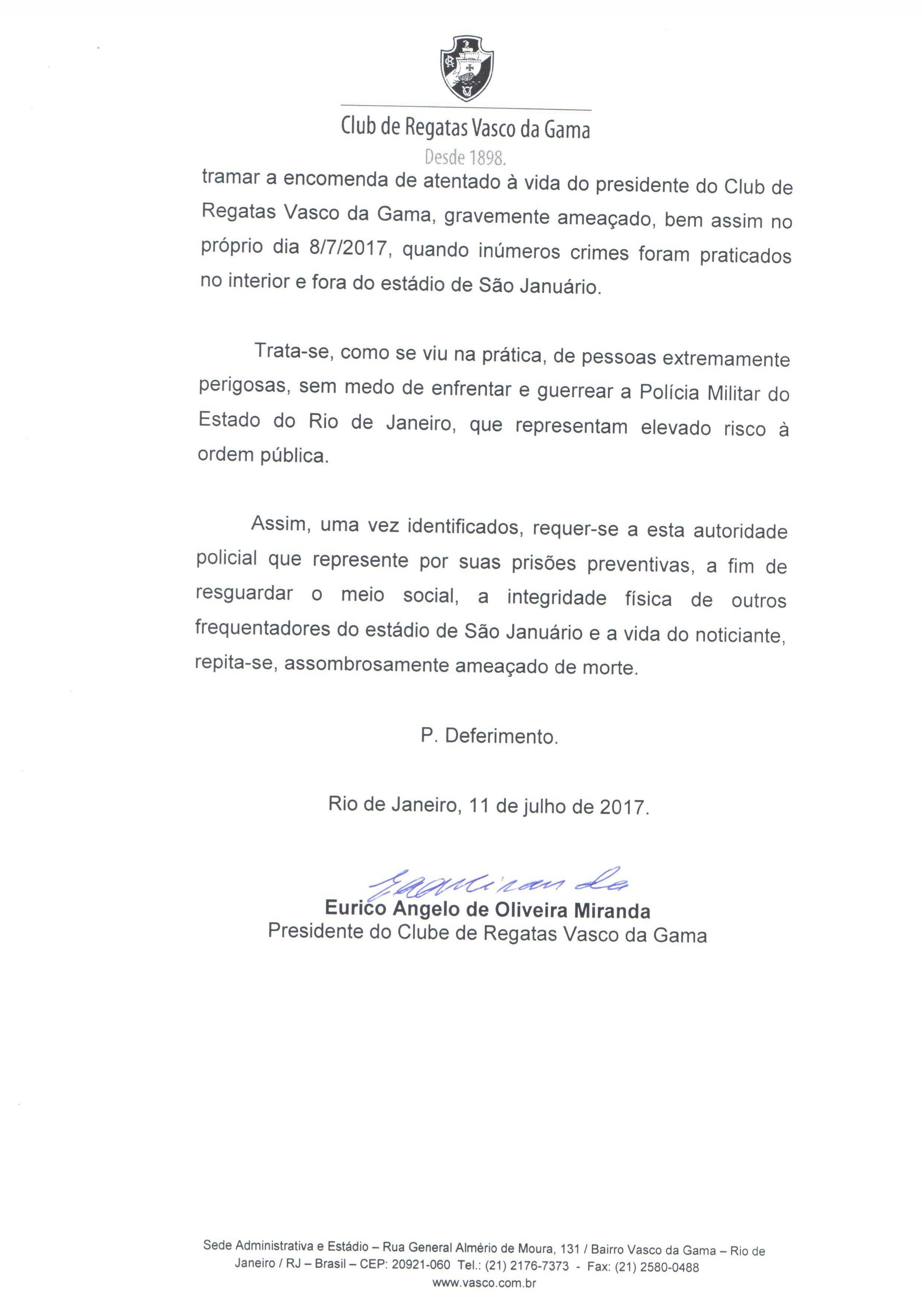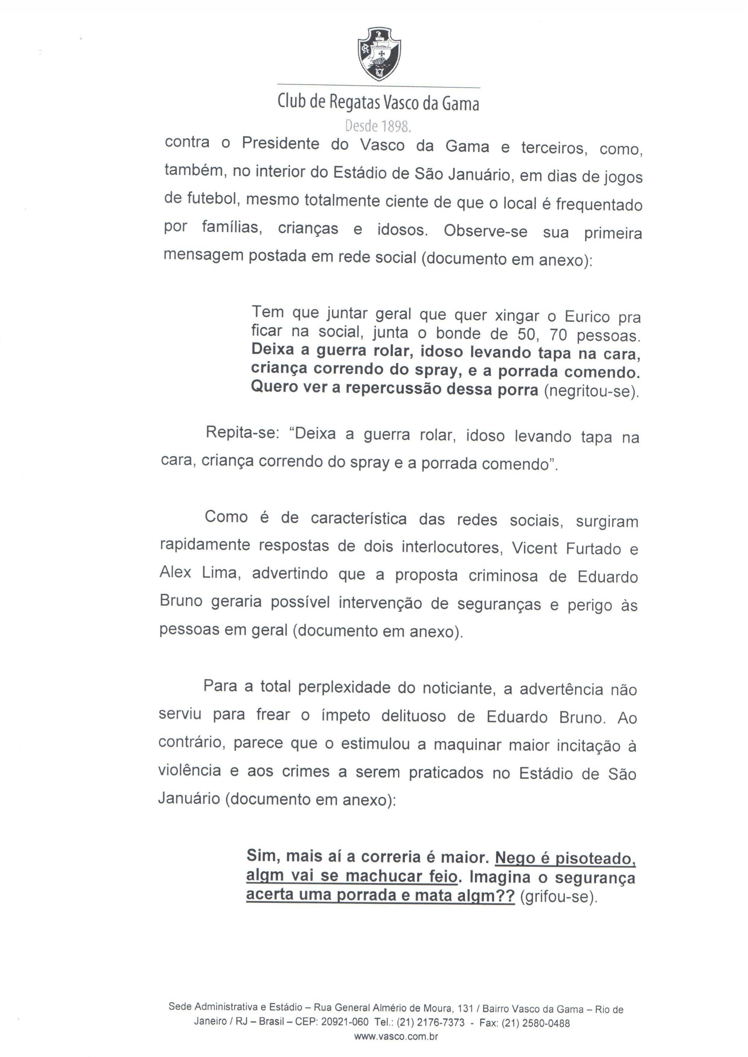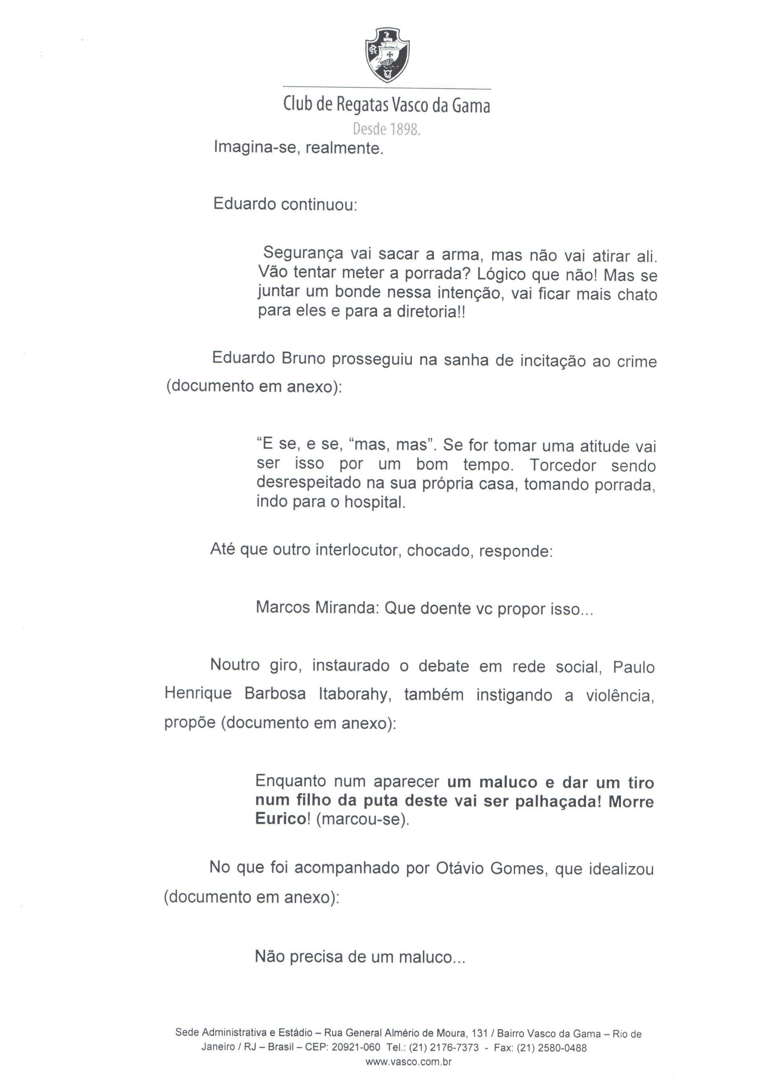 Vasco aciona a Polícia Civil para apurar incitações a violência