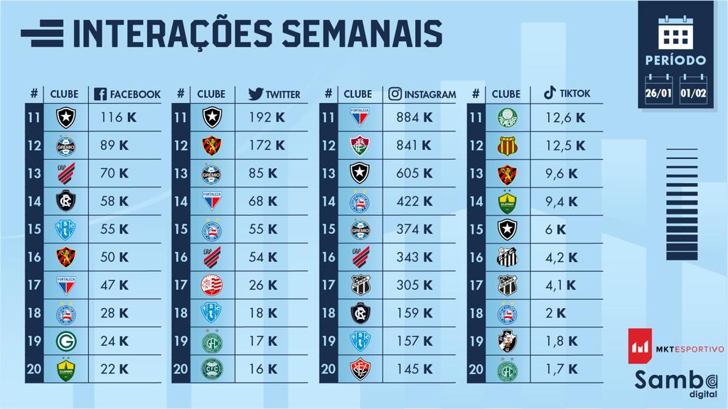 No @VascodaGama, é a segunda semana seguida que o clube figura no TOP 10 do Instagram e, de quebra, também está de volta no Twitter e no Facebook, fato que não acontecia desde a semana de 27/10. VASCO.