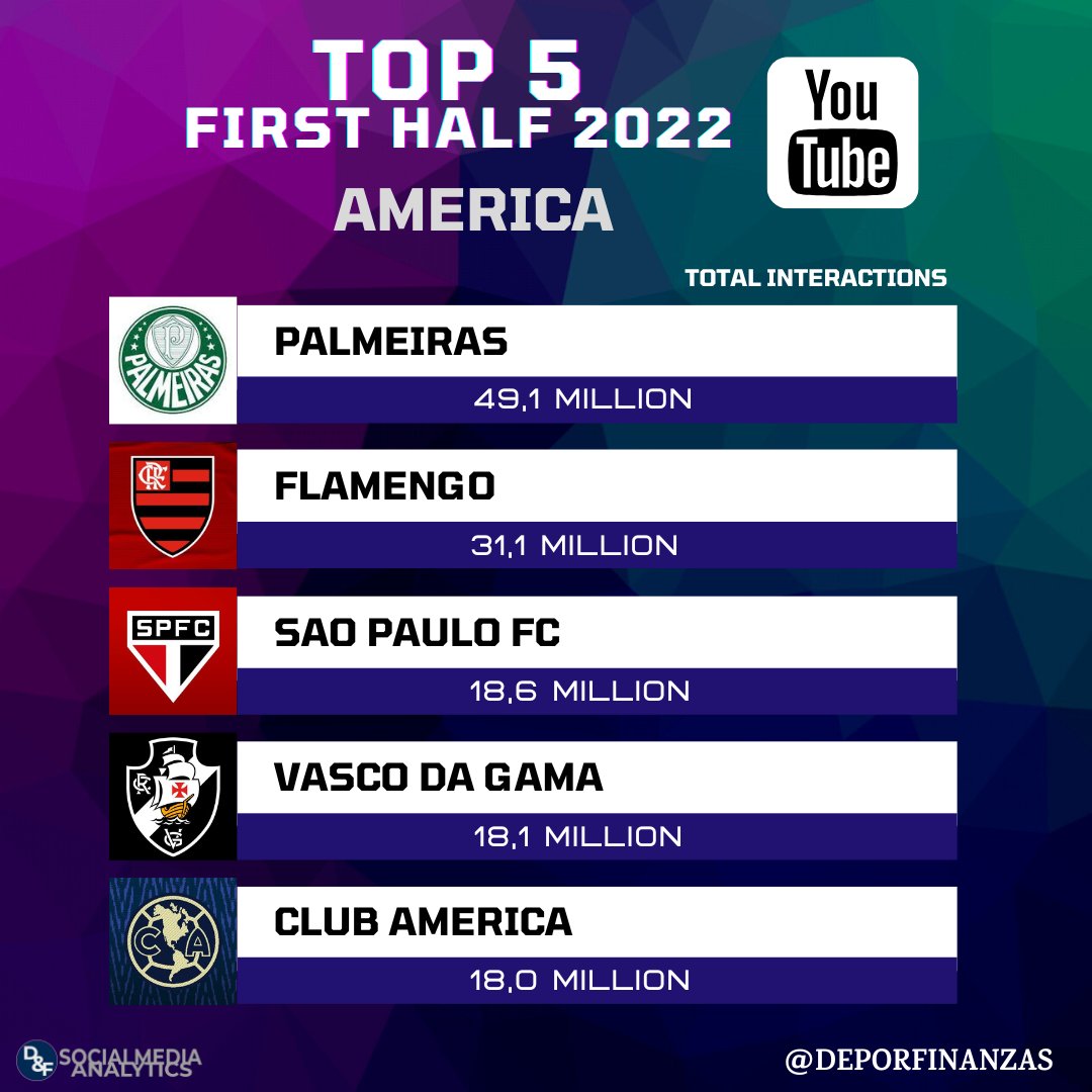 📲 5 most popular american football clubs on #youtube during the first half of 2022!