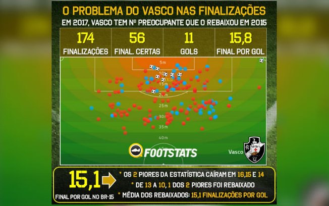 Para termos a dimensão de quanto esse número é alto, a atual média (15,8) é a pior entre os 12 considerados maiores times do Brasil nesse começo de ano, e, pior que isso, maior que a marca atingida pelo Vasco no último rebaixamento do Brasileirão em 2015 (15,1 finalizações para um gol).